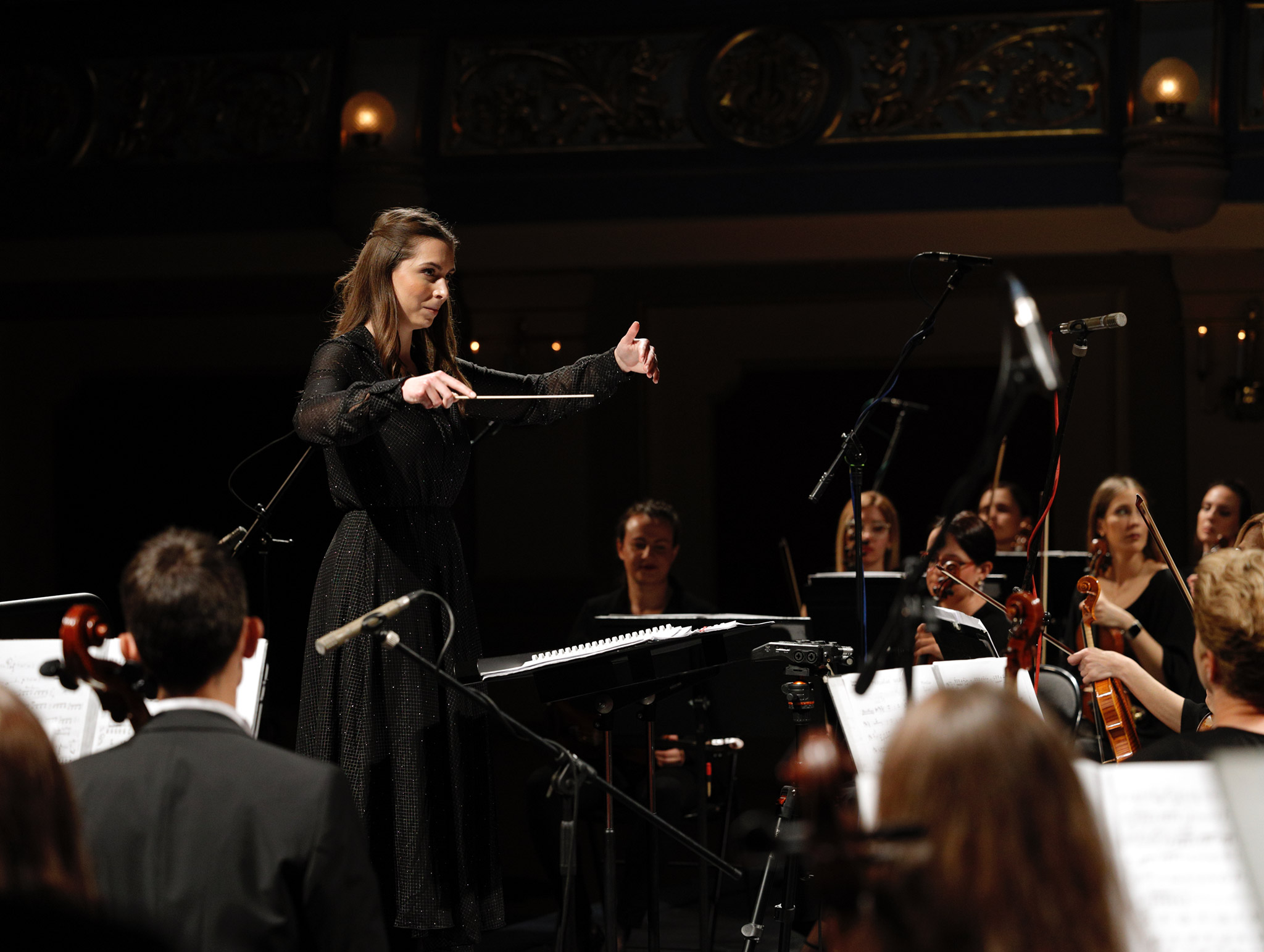 In the second part of the concert, conducted by Damir Bunoza, the young soprano performed the arias “Vilja Lied” (Hanna Glawari's aria from the operetta “The Merry Widow”) and “Meine Lippen, sie küssen so heiß” (Judith's aria from the operetta “Judith”) by F. Lehár. The program concluded with Symphony No. 8 in B minor by F. Schubert, also known as the “Unfinished Symphony.”