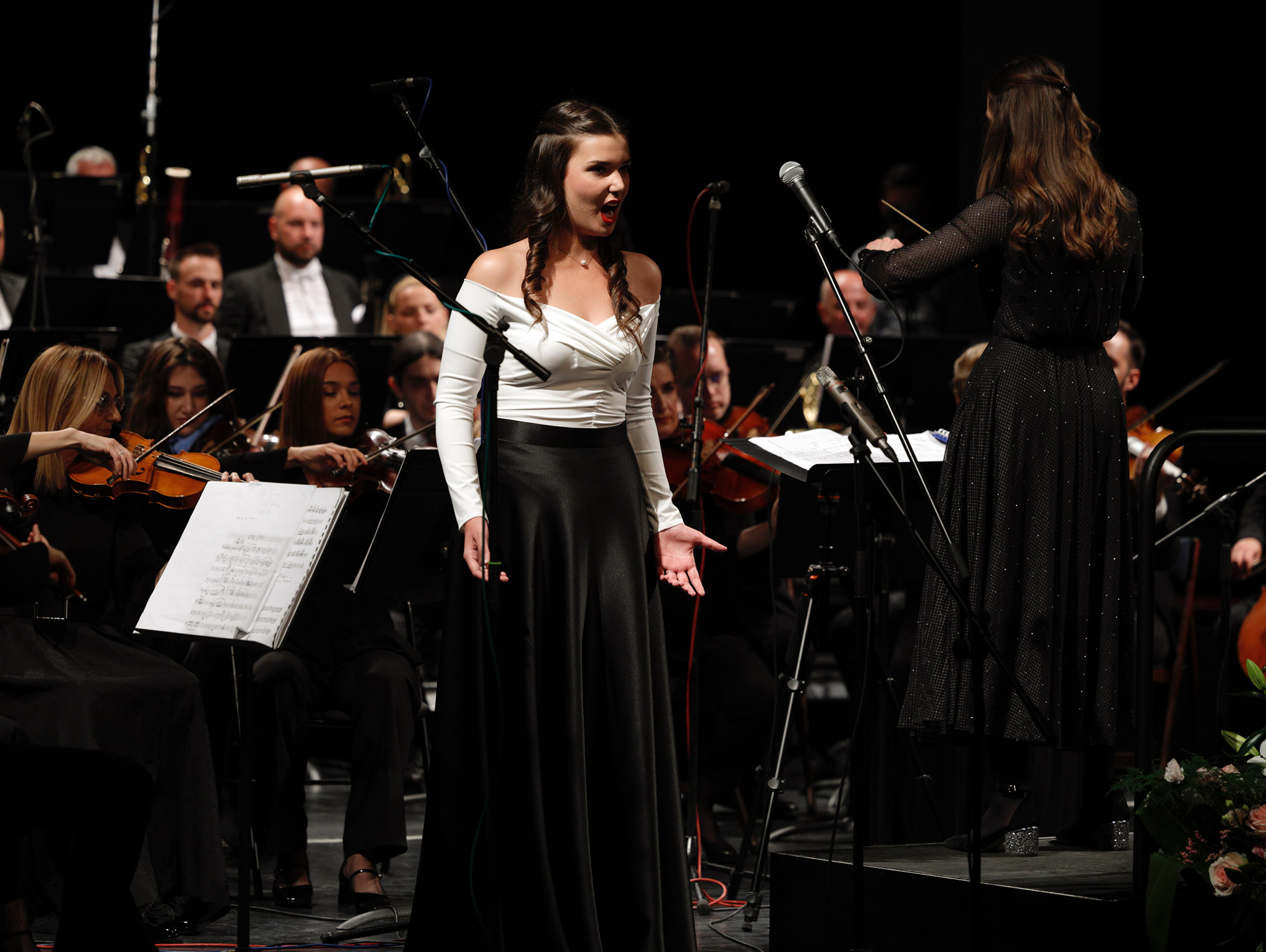 In the first part of the concert, conducted by Elle Piknjač, the piece “Festive Sketch” by Miroslav Špiler was performed, followed by the arias “Batti, batti, o bel Masetto” (Zerline's aria from the opera “Don Giovanni”) and “Ach, ich fühl’s” (Pamina's aria from the opera “The Magic Flute”) by W. A. Mozart, interpreted by Jovana Pavlović.