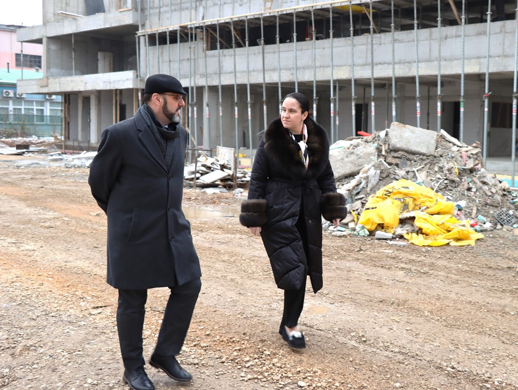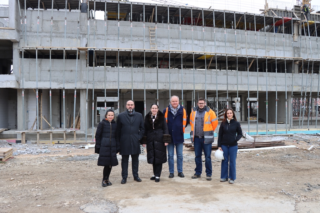 Today, Benjamina Karić, the Mayor of the Municipality of Novo Sarajevo, accompanied by Professor Dr. Tarik Zaimović, the Rector of the University of Sarajevo, visited the ongoing construction of the University of Sarajevo Library, situated within the University Campus.
