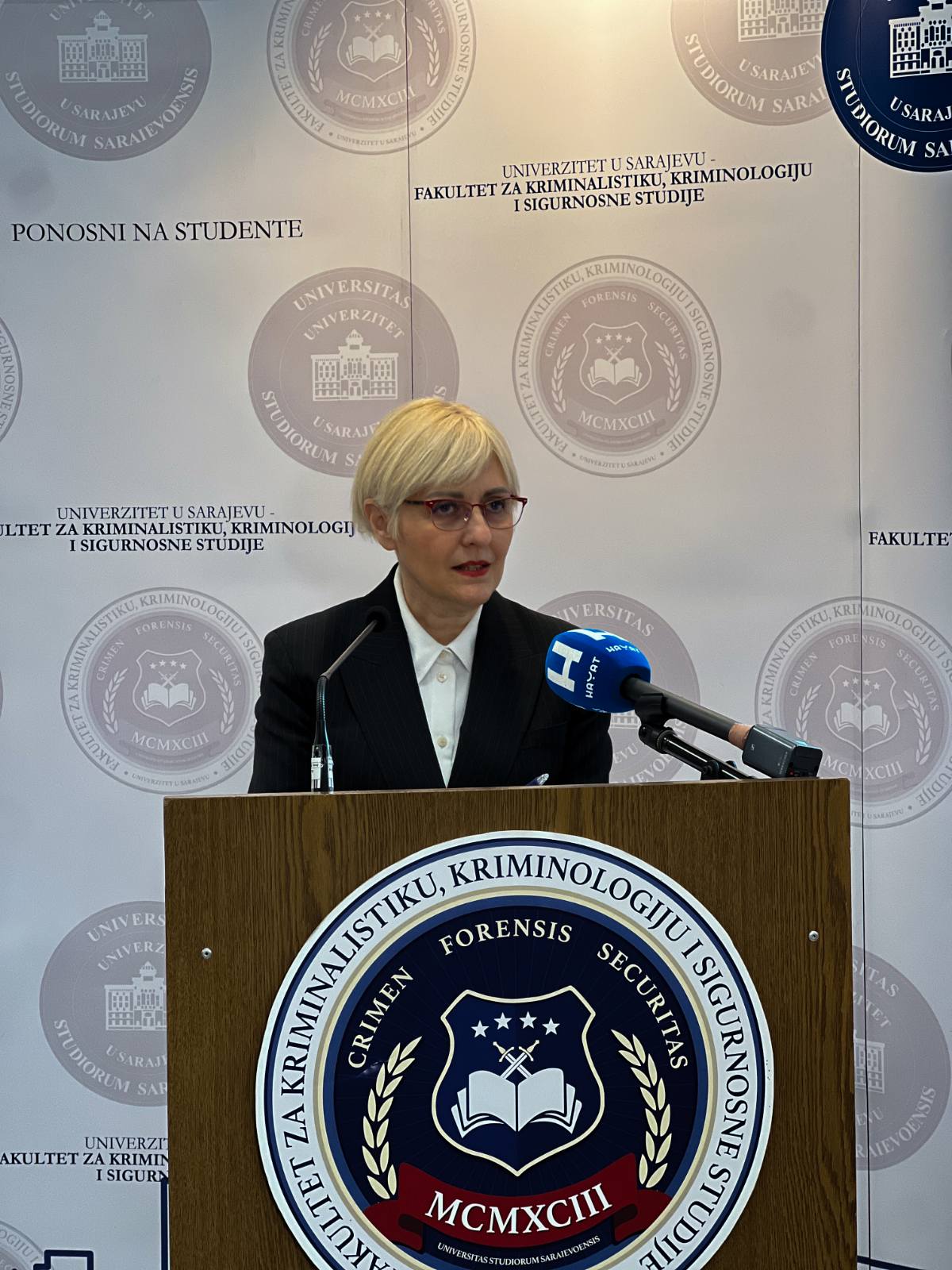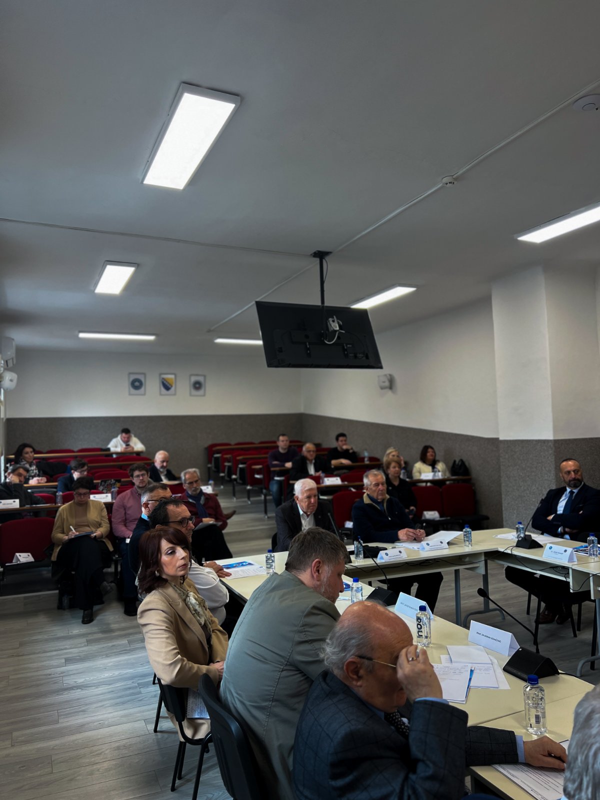 The conference gathered esteemed figures from academia and the broader social community, featuring distinguished speakers including Professor Dr. Lada Sadiković, who also served as the moderator, alongside Academician Mirko Pejanović, Corresponding Member of the ANU BiH Mile Babić, Professor Dr. Edina Bećirević, Corresponding Member of the ANU BiH Husnija Kamberović, Professor Dr. Goran Kovačević, Professor Dr. Edita Hasković, Professor Dr. Ivo Komšić, Strajo Krsmanović, Jakob Finci, Monsignor Franjo Topić, among numerous other participants and guests. The opening addresses were delivered by the Rector of the University of Sarajevo, Professor Dr. Tarik Zaimović, and the Dean of the Faculty, Professor Dr. Jasmin Ahić.
