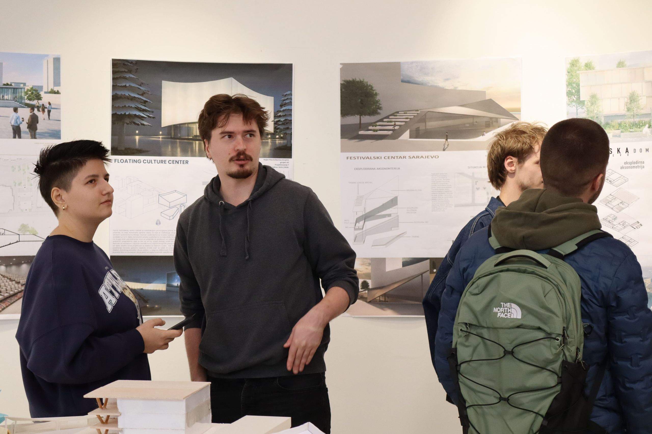 Izložba radova generacije I godine II ciklusa studija u okviru predmeta Projektovanje 7 – Projektovanje zgrada za kulturu, realizirana pod mentorstvom prof. dr. Adnana Pašića, uz podršku docentice Zulejhe Šabić-Zatrić i asistenta Edina Zoletića, održana je u četvrtak 12.02.2026. godine u prostoru Austrijske kuće u Sarajevu. Izložbom su predstavljeni rezultati semestralnog istraživačko-projektnog zadatka usmjerenog na promišljanje festivalskog centra na osjetljivoj i historijski značajnoj gradskoj lokaciji – u neposrednoj blizini Narodnog pozorišta, odnosno na prostoru postojećeg parkinga pored Trga Susan Sonntag.