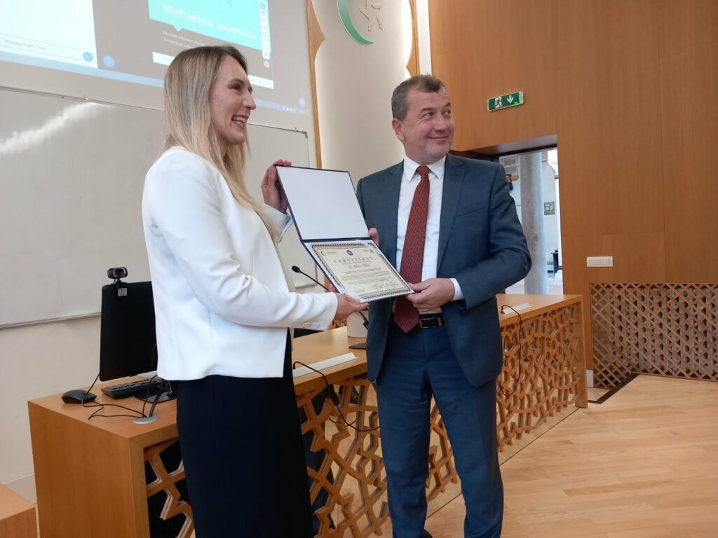 Dobrodošlicu i čestitku polaznicima kojima je dodjeljen certifikat na samom početku svečanosti uputio je dekan Fakulteta prof. dr. Mustafa Hasani. U svome obraćanju dekan Hasani govorio je o značaju ovoga programa, te istakao da ova i ovakve svečanosti nisu samo priznanje za uspjeh, već i prilika da se stavi akcenat na još jedan korak naprijed u profesionalnom razvoju i cjeloživotnom učenju – vrijednostima koje danas čine temelj ličnog, ali i kolektivnog napretka.