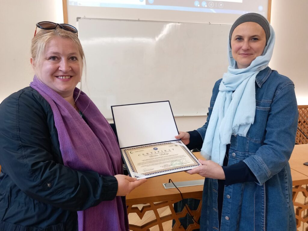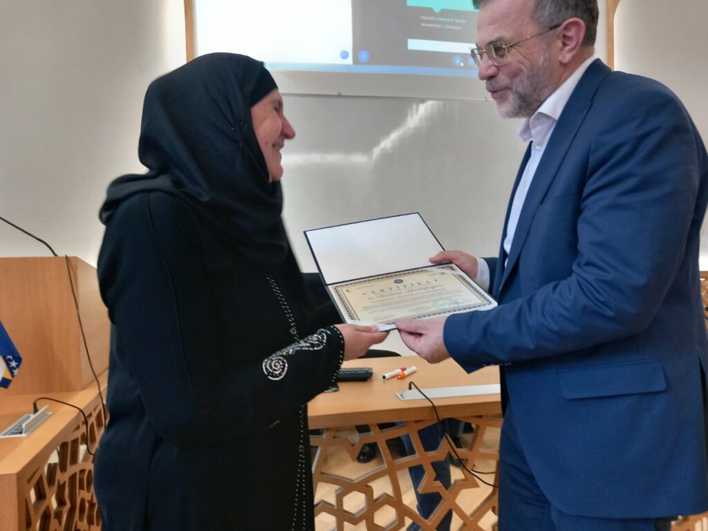 Svečanosti dodjele certifikata prisustvovao je dio učesnika Kursa i članova njihovih porodica, a najuspješnijim polaznicima ovogodišnjeg ciklusa, certifikate su uručili dekan Fakulteta, prof. dr. Mustafa Hasani i dio predavača sa ovogodišnjeg programa, prof. dr. Zuhdija Hasanović, prof. dr. Senad Ćeman i mr. Đermana Kurić.