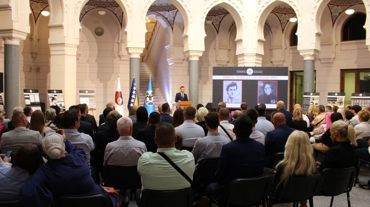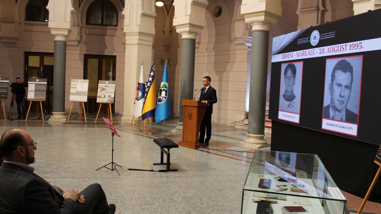 U Vijećnici je održan komemorativni skup u organizaciji Grada Sarajeva, Kantona Sarajevo i Instituta za istraživanje zločina protiv čovječnosti i međunarodnog prava Univerziteta u Sarajevu. Tom prilikom otvorena je i izložba Instituta za istraživanje zločina protiv čovječnosti i međunarodnog prava Univerziteta u Sarajevu: „ZLOČINI NA MARKALAMA: Ubijanje i ranjavanje civila – suđenje zločincima, negiranje istine, otpor zaboravu“, čiji su autori dr. sc. Muamer Džananović, direktor Instituta, dr. sc. Merisa Karović-Babić, viša naučna saradnica Instituta, i mr. Sead Muhić, stručni saradnik Instituta.