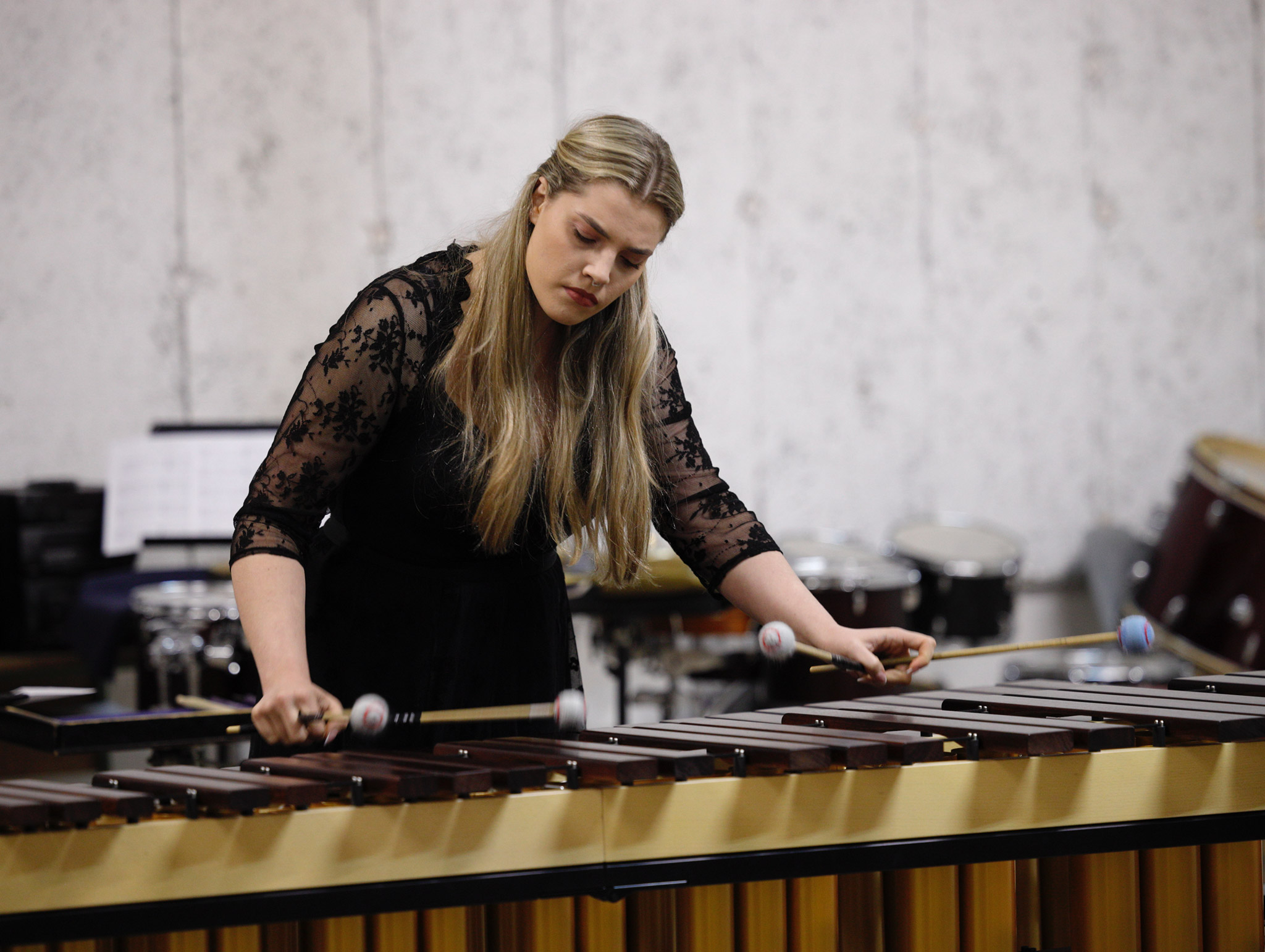 Program je uključio djela Emmanuela Sejournea, i to "Lila" za vibrafon, koje je izveo Benjamin Potruković, te "Katamiya" za marimbu u interpretaciji Amari Radovniković. Melina Šišić svirala je Komad za marimbu br. 5 Ruuda Wienera, nakon čega se Toma Šoletić predstavio izvedbom komada "After You" za vibrafon Mikea Sterna. Kao multipercussion duo nastupili su Ante Boban i Benjamin Poturković koji su izveli djelo "42nd Street Rondo" Wayne Siegela, a zatim je Boban interpretirao "Ilijaš" za marimbu Nebojše Jovana Živkovića. Emili Mišić svirala je stav "Majestic" iz kompozicije "Caritas" za marimbu Michaela Burritta, dok su Toma Šoletić, Amari Radovniković, Benjamin Poturković i Ante Boban zajedno izveli "Chamade" za četiri doboša Igora Lešnika. Koncert je zaokružen zajedničkom tačkom učesnika projekta, na čelu s prof. mr. Davorom Marausom i asst. mr. Dariom Kosom, uz aktivnu participaciju publike.