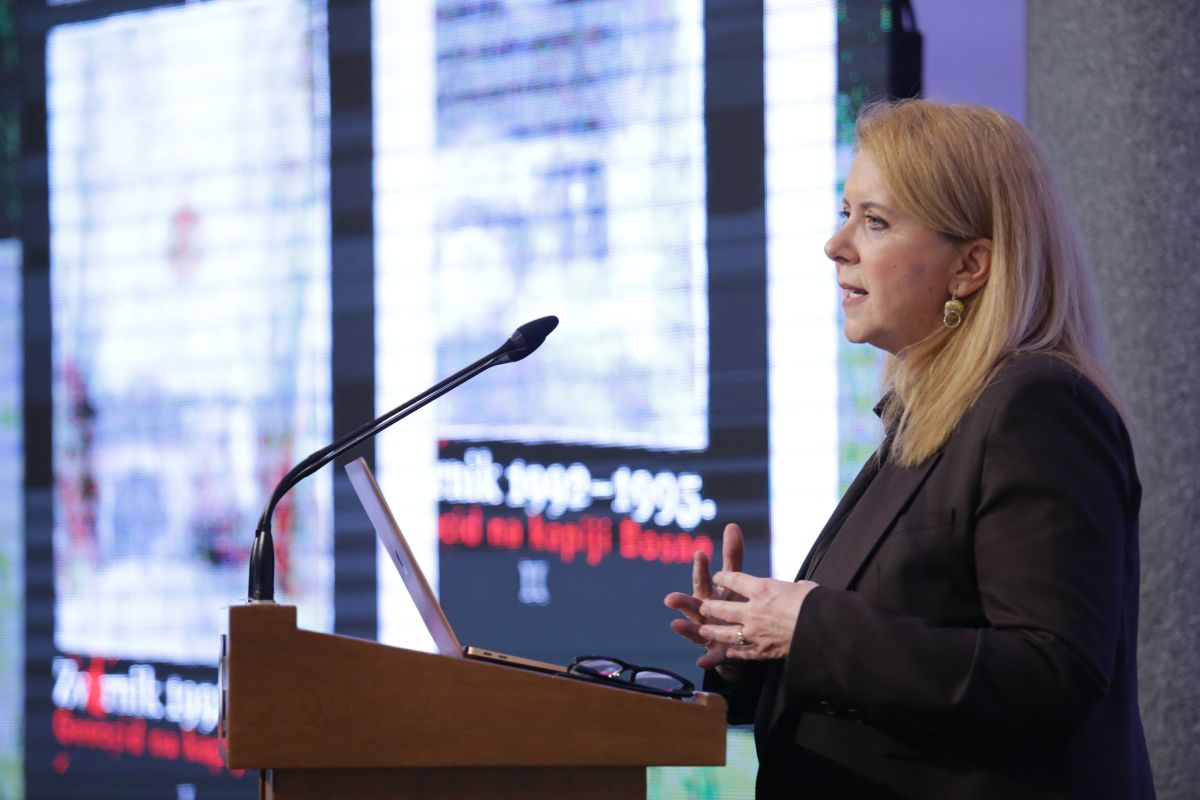 Posebno je istakla da autori primjenjuju složen kvalitativni metodološki pristup koji omogućava višedimenzionalnu rekonstrukciju zločina, precizno mapiranje struktura odgovornosti i uspostavljanje jasnih kauzalnih veza između političkih odluka, vojnih struktura i konkretnih zločina. Genocid se u knjizi analizira kao dugotrajan i višefazan proces, čija je politička i ideološka priprema započela znatno prije 1992. godine, dok je njegovo operativno provođenje trajalo od 1992. do 1995. godine.