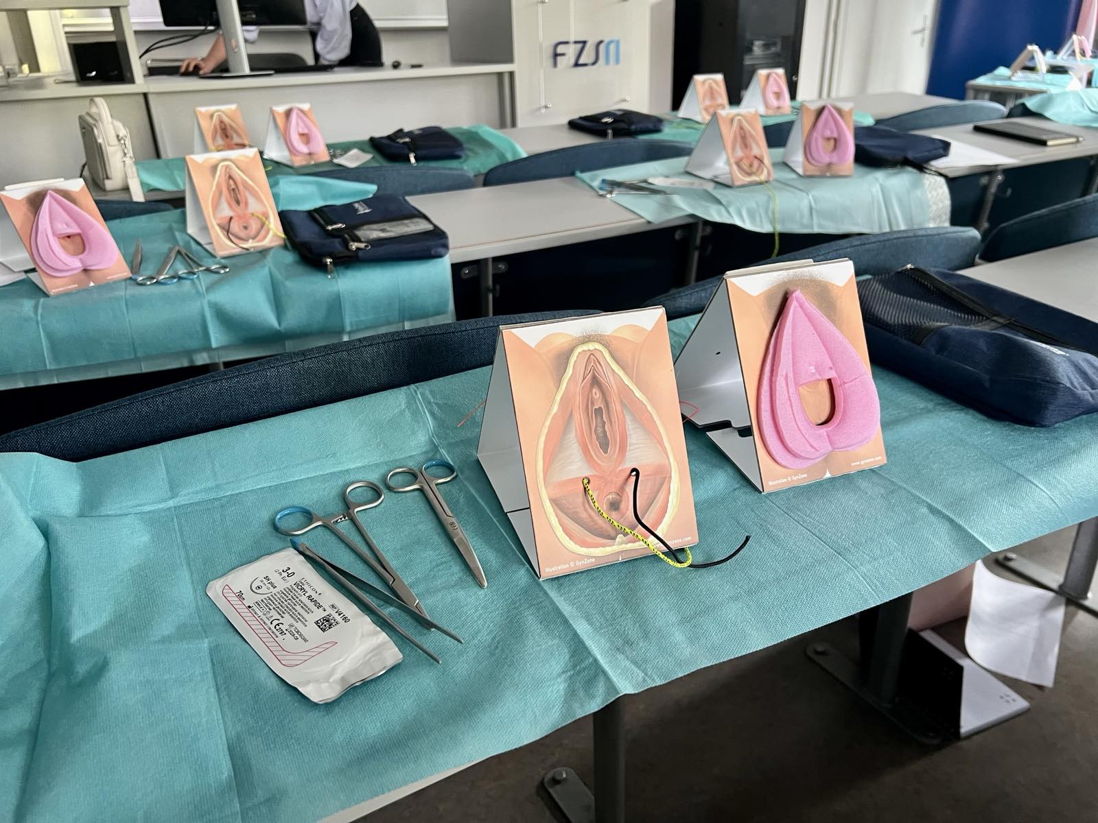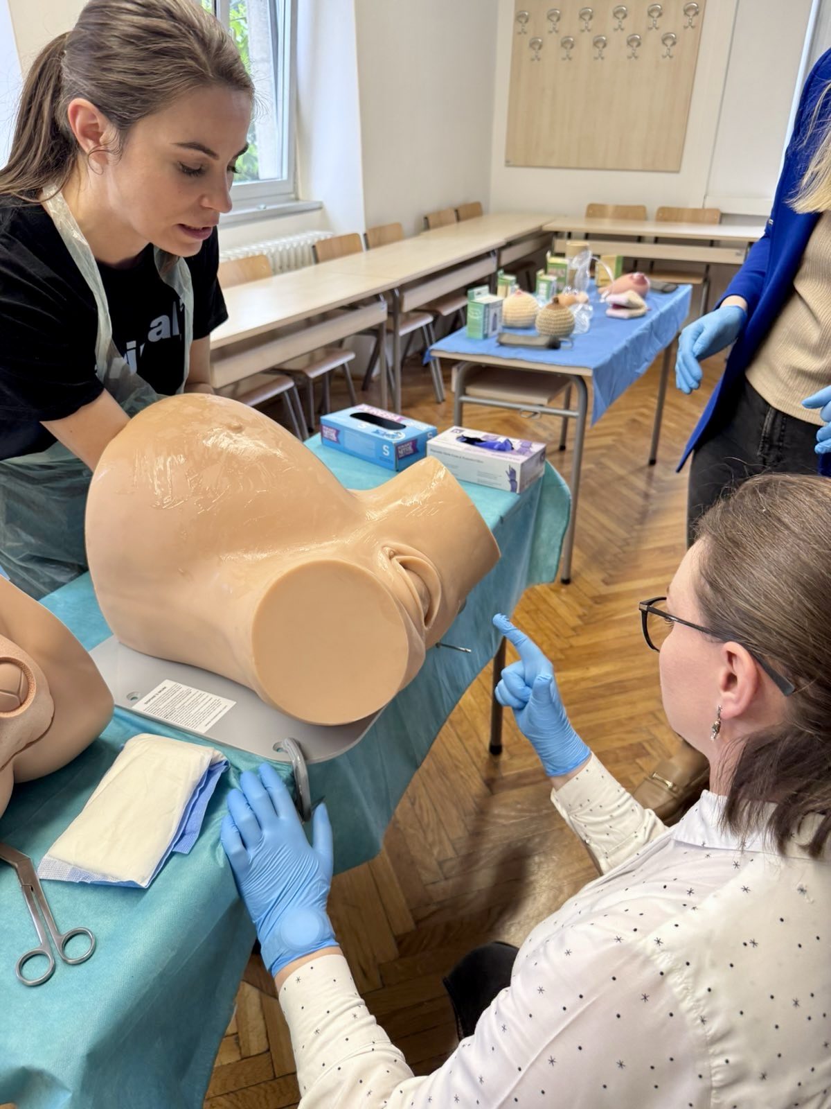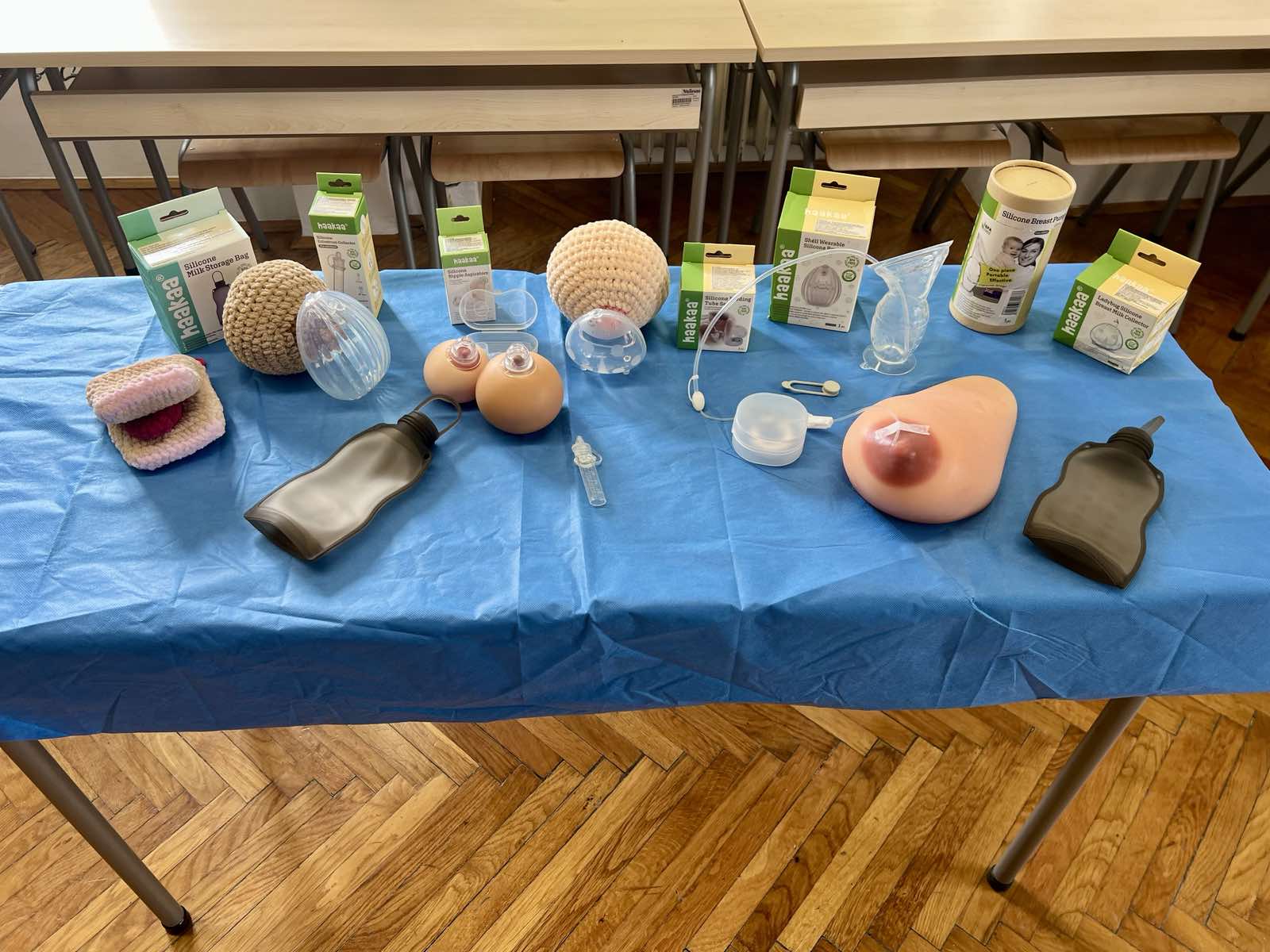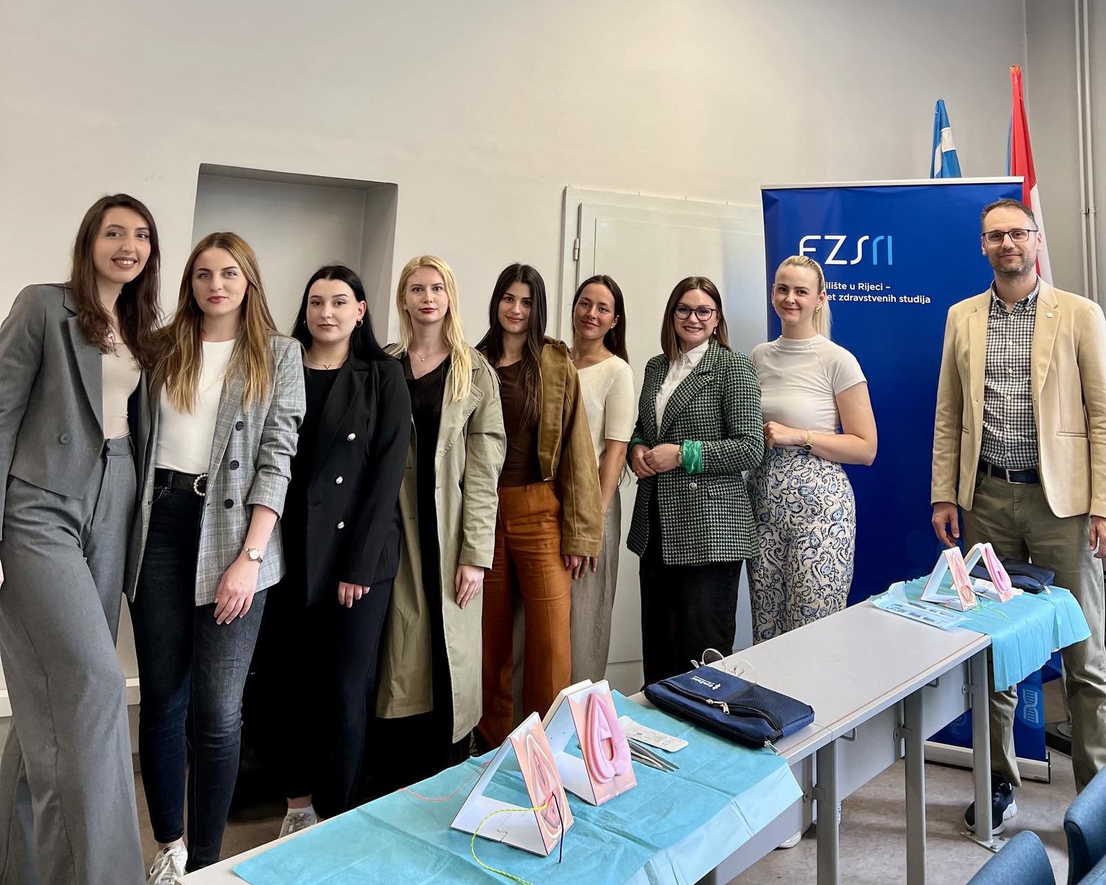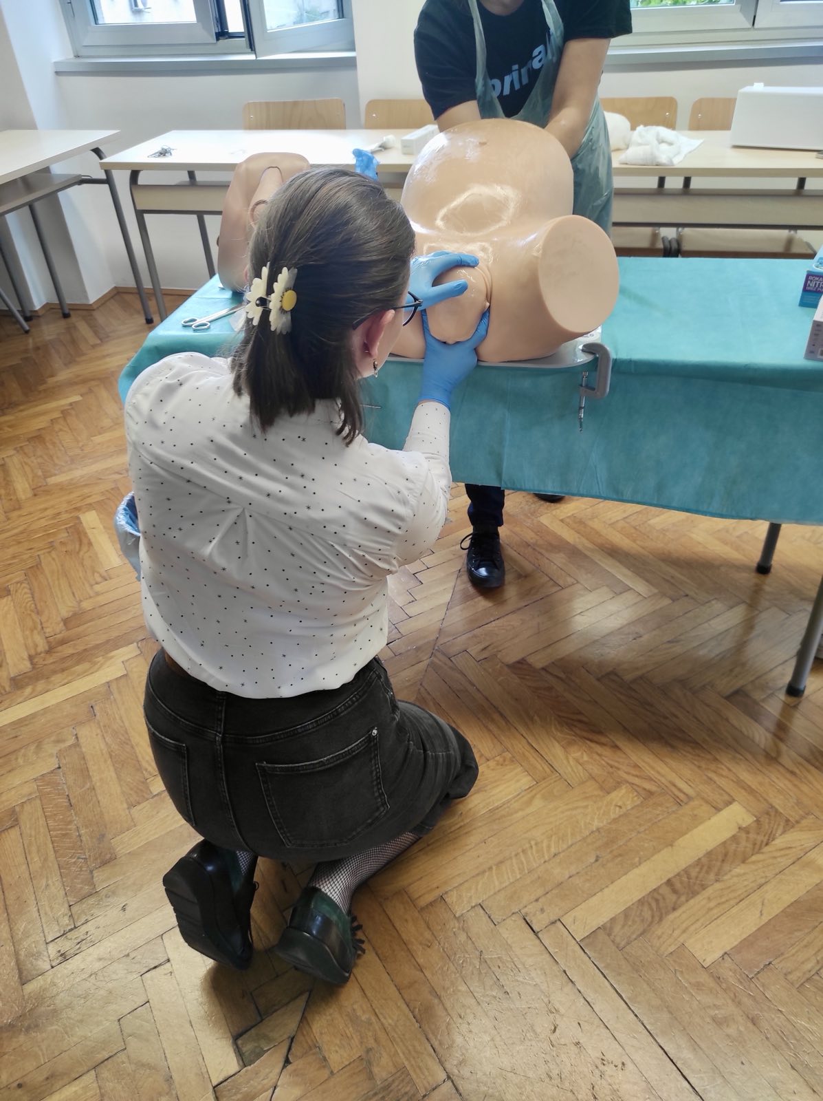 Nakon održanih studentskih predavanja održane su stručne edukativne praktične radionice na teme: “Hirurško zbrinavanje epiziotomije i razdora međice”, “Manuelna perinealna protekcija” i “Nefarmakološke metode ublažavanja boli u porođajnom dobu uz pomoć Rebozo marame”.