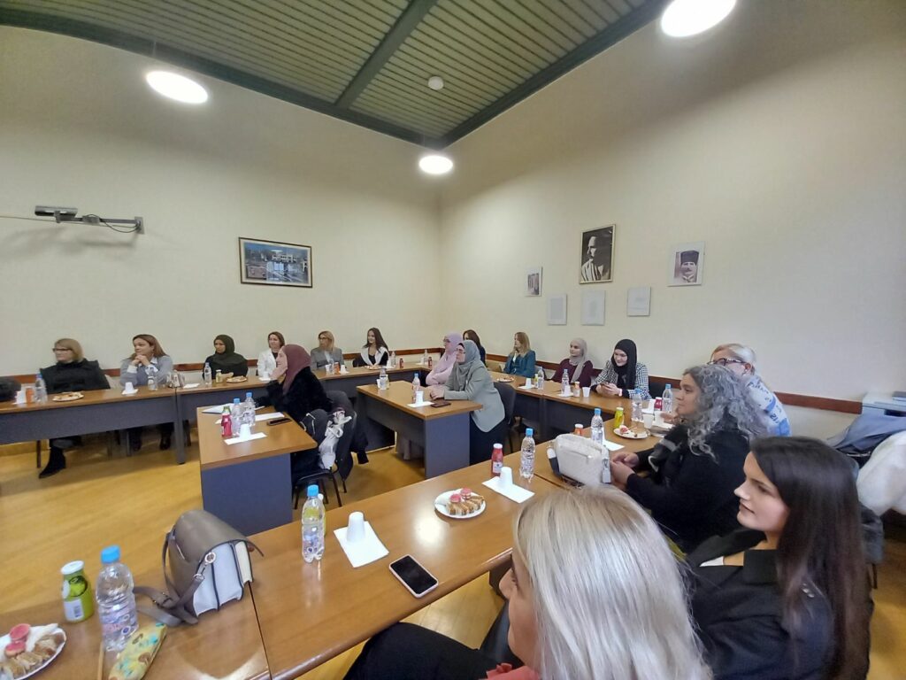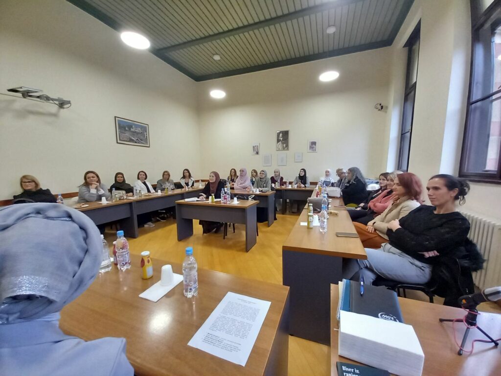 Na Fakultetu islamskih nauka gošće su dočekale prof. dr. Zehra Alispahić i viša asistentica Azra Kulenović. Nakon kraćih obraćanja i upoznavanja sa radom Fakulteta, gošćama su se obratile i univerzitetske profesorice Fahira Fejzić-Čengić, Azra Zaimović, Amila Svraka-Imamović i Selvira Draganović.