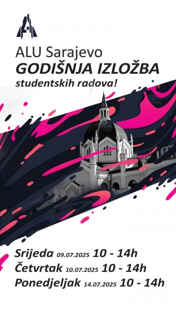 Godišnju izložbu moguće je pogledati u srijedu (09.07.), četvrtak (10.07.) i ponedjeljak (14.07.) u periodu od 10h do 14h na Akademiji likovnih umjetnosti. Dobrodošli!