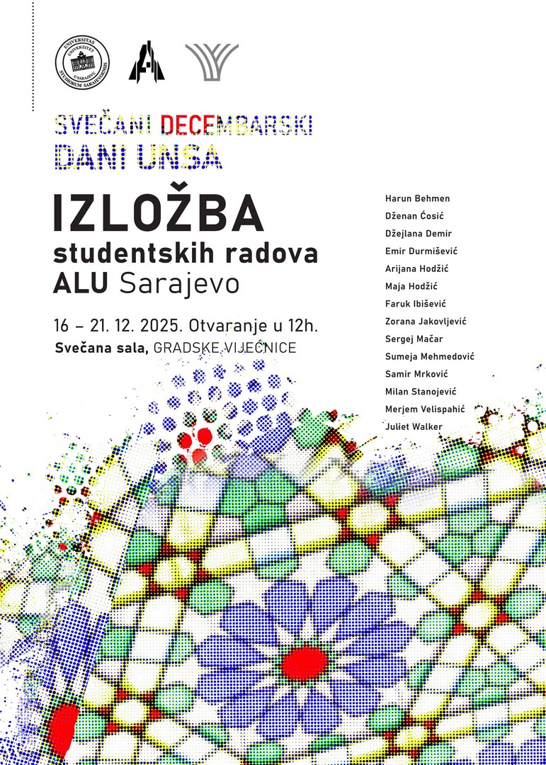 U okviru Svečanih decembarskih dana Univerziteta u Sarajevu, 16. decembra u prostorijama Vijećnice, otvorena je Izložba studentskih radova Akademije likovnih umjetnosti Univerziteta u Sarajevu.
