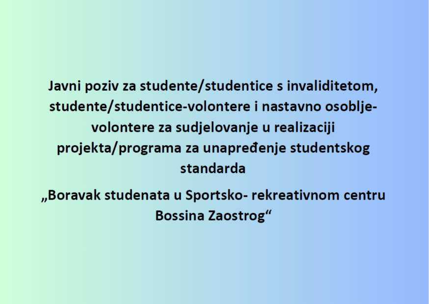 Javni poziv za studente/studentice s invaliditetom, studente/studentice-volontere i nastavno osoblje-volontere za sudjelovanje u realizaciji projekta/programa za unapređenje studentskog standarda