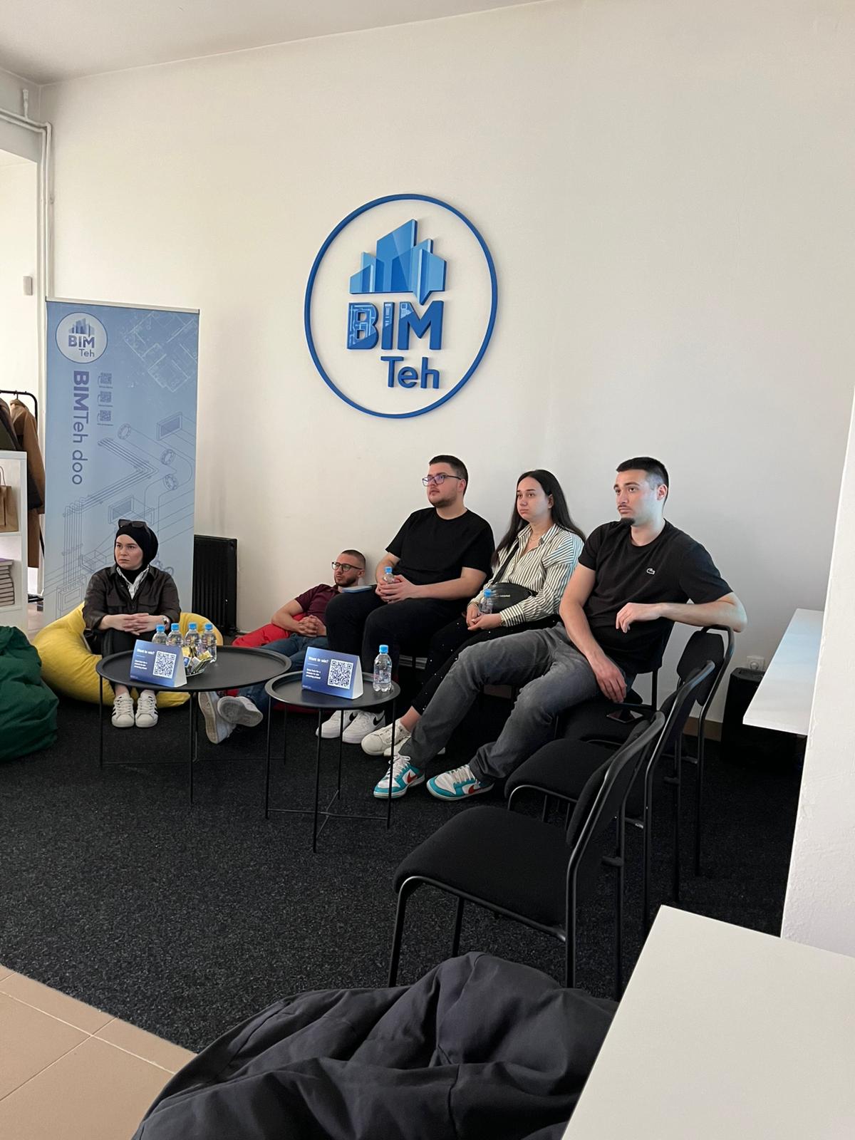 Kompanija BIMTeh d.o.o. ističe se stručnim radom u oblasti informacijskog modeliranja zgrada (BIM – Building Information Modeling), a njene aktivnosti obuhvataju projektovanje i modeliranje objekata u skladu s BIM standardima, kao i unutrašnje uređenje, elektroinstalacije i HVAC sisteme. Tokom ove izuzetno srdačne i profesionalno organizirane posjete, studenti su imali priliku upoznati se s radom stručnog tima kompanije, saznati više o primjeni BIM tehnologija u svakodnevnoj praksi te čuti konkretna iskustva i izazove s kojima se inženjeri suočavaju u stvarnim projektima.