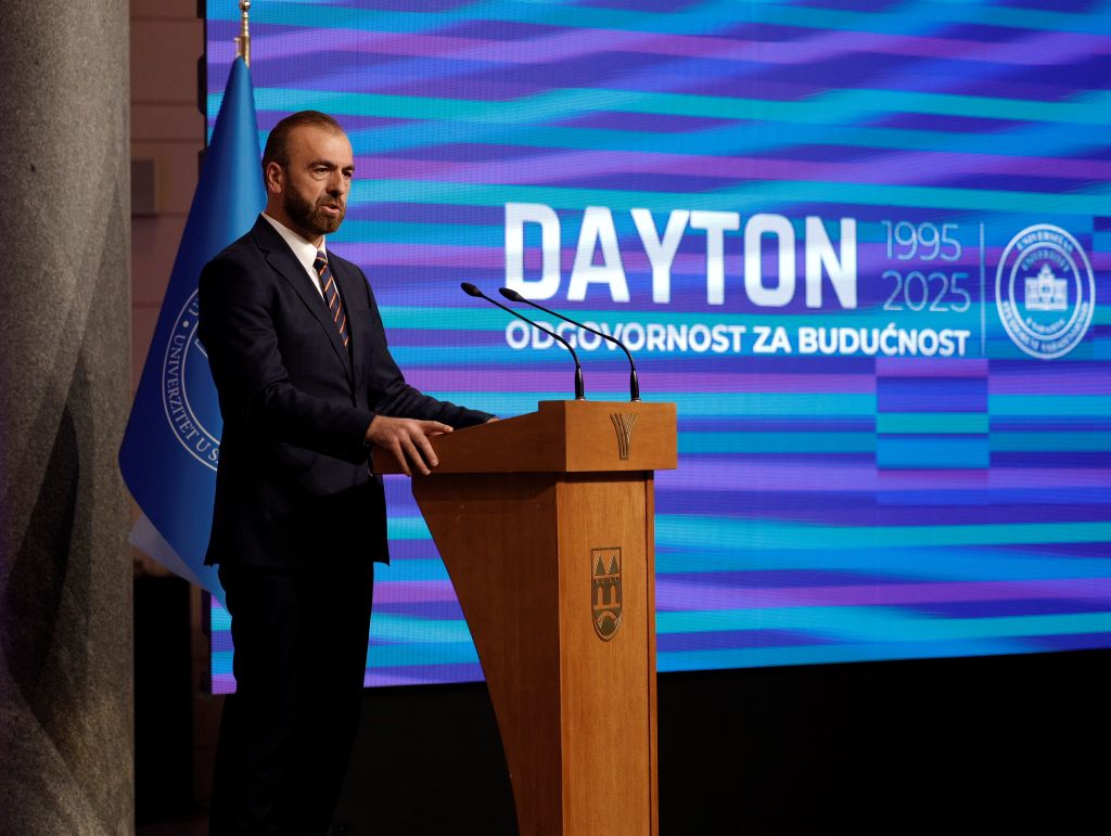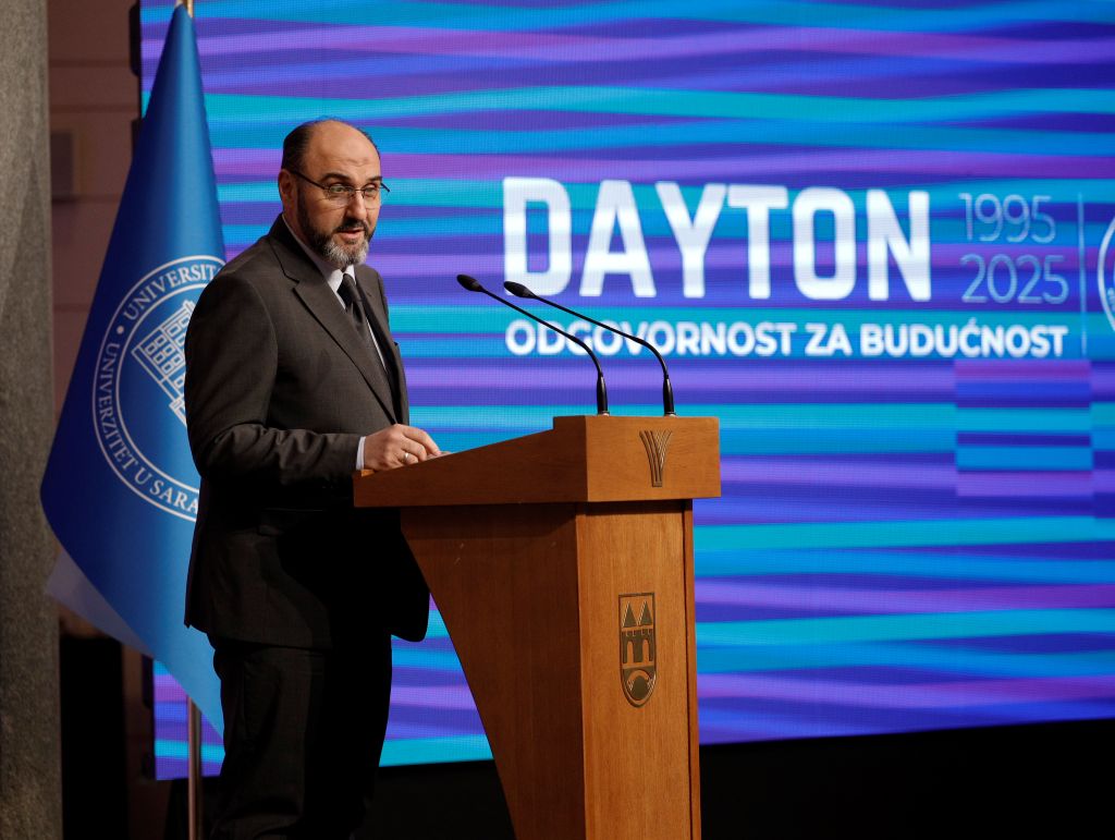 „Danas, trideset godina nakon potpisivanja Dejtonskog mirovnog sporazuma, kao naučna i akademska zajednica imamo obavezu da otvoreno, odgovorno i bez zadrške govorimo o njegovim posljedicama, granicama i značenju za budućnost Bosne i Hercegovine.Vrijeme je da kao društvo prerastemo Dejtonski mirovni sporazum i da kroz demokratske reforme, uz puno poštovanje međunarodnog prava i sudskih presuda, kreiramo novi bosanskohercegovački ustavni okvir“,istakao jeprof. dr. Tarik Zaimović, rektor Univerziteta u Sarajevu.