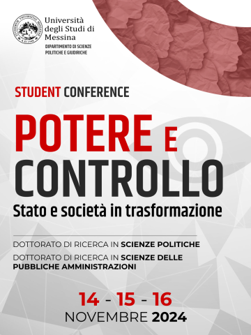 Doktoranti Univerziteta u Mesini u oblastima "Političkih nauka" i "Nauka o javnoj upravi" sa zadovoljstvom pozivaju doktorante i postdoktorante, političkih nauka, javne uprave, prava, ekonomije i humanističkih nauka na Studentsku konferenciju "Moć i kontrola: država i društvo u transformaciji". Događaj, zakazan za 14-15-16 novembar 2024. godine, podržat će susret različitih naučnih metodologija, sa ciljem unapređenja dijaloga i zajedničkog istraživanja dijalektike između moći i kontrole. Ova konferencija ima za cilj da izazove široku diskusiju među novim generacijama istraživača, obogaćenu prisustvom autoritativnih naučnika koji će održati treninge.