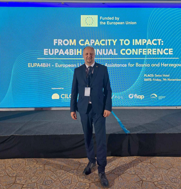 Dekan Fakulteta za kriminalistiku, kriminologiju i sigurnosne studije Univerziteta u Sarajevu, prof. dr Jasmin Ahić, i prodekanesa za međunarodnu saradnju, prof. dr Irma Deljkić, uzeli su učešće na godišnjoj konferenciji „Od kapaciteta do rezultata: EUPA4BiH“, održanoj u petak, 7. novembra, u organizaciji projekta EUPA4BiH uz podršku Evropske unije. Na konferenciji su se okupili predstavnici institucija zaduženih za provođenje zakona, međunarodnih organizacija te stručnjaci iz oblasti sigurnosti i pravosuđa. Prvi dio programa bio je posvećen razmjeni iskustava o sprečavanju pranja novca i finansiranja terorizma, kao i jačanju saradnje između policijskih i pravosudnih tijela. Poseban segment konferencije bio je usmjeren na afirmaciju uloge žena u policijskim strukturama i njihovo profesionalno osnaživanje. U drugom dijelu programa, posvećenom dijalogu i interaktivnoj radionici s mladima, učestvovali su i studenti Fakulteta, zajedno s kadetima i kadetkinjama akademija te studentima različitih fakulteta iz cijele Bosne i Hercegovine. Ovim učešćem Fakultet još jednom pokazuje opredijeljenost da aktivno doprinosi razvoju sigurnosnog sektora i uključivanju mladih stručnjaka u kreiranje sigurnije budućnosti Bosne i Hercegovine.