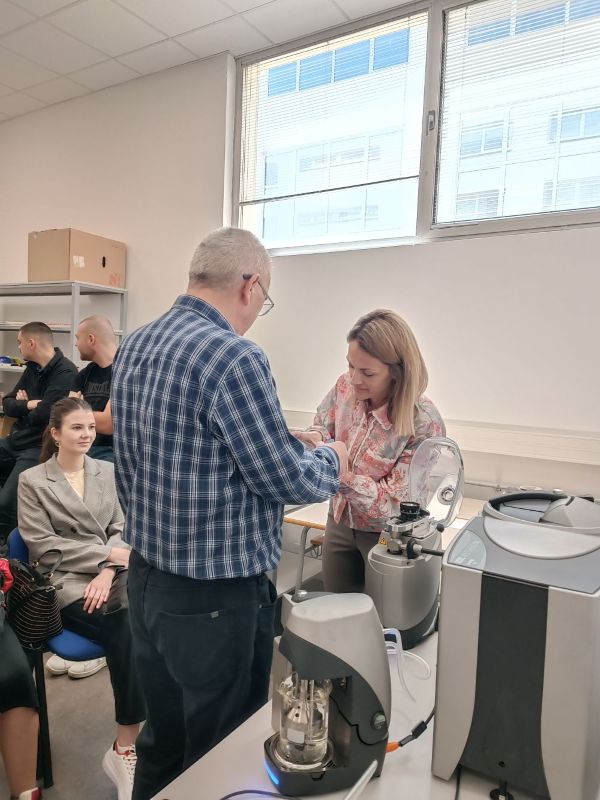 Prezentacija se sastojala iz dva dijela, u prvom djelu su studenti mogli da čuju tehničke karakteristike naprednog sistema Mastersizer 3000, a zatim su kroz laboratorijsku demonstraciju imali priliku da vide princip rada uređaja na realnim uzorcima. Tokom demonstracije istaknute su ključne prednosti sistema, kao što su jednostavnost upotrebe, visoka ponovljivost i mogućnost integracije sa savremenim softverskim rješenjima. Prikaz u laboratoriji dao je učesnicima potpuni uvid u postupak mjerenja – od pripreme uzorka do interpretacije rezultata.