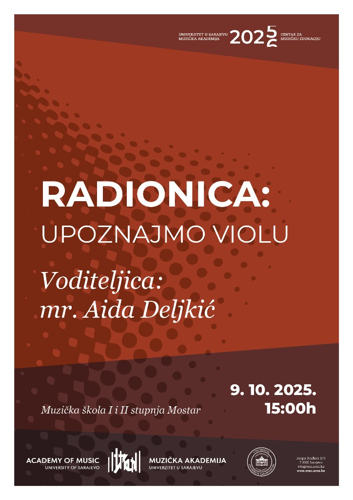 Nakon realizirane radionice i cjelovečernjeg koncerta u Tuzli (9. 6. 2025), radionica i koncert su dana 9. 10. 2025. upriličeni za učenike i nastavnike Muzičke škole I i II stupnja, Mostar i Glazbene škole Ivana pl. Zajca, Mostar. Po završetku radionice, mr. Aida Deljkić (viola) i mr. Zerina Šabotić (klavir) održale su cjelovečernji koncert u Galeriji kraljice Katarine Kosača, HD „Herceg Stjepan Kosača“, Mostar.