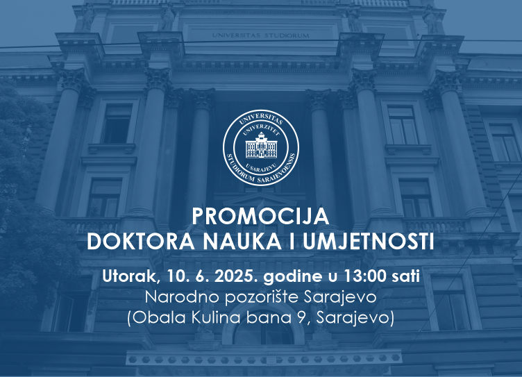 Promocija doktora nauka Univerziteta u Sarajevu bit će upriličena u utorak, 10. juna 2025.godine sa početkom u 13:00 sati u Narodnom pozorištu Sarajevo (Obala Kulina bana 9).