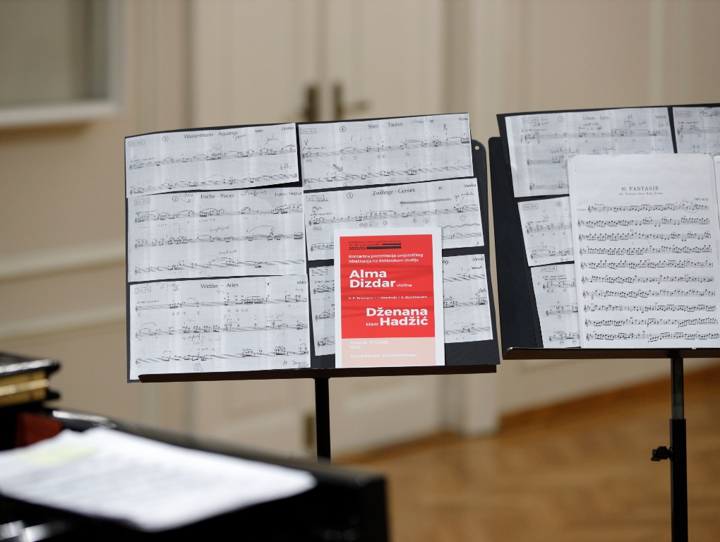 Pod okriljem Koncertne sezone Muzičke akademije, sinoć je u Koncertnoj sali “Cvjetko Rihtman” upriličeno javno koncertno predstavljanje umjetničkog istraživanja Alme Dizdar, doktorandice iz oblasti violine, violinistice i asistentice na Odsjeku za gudačke instrumente i gitaru Muzičke akademije Univerziteta u Sarajevu, koje realizuje pod mentorstvom prof. emer. Ernsta Kovacica.