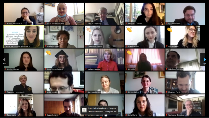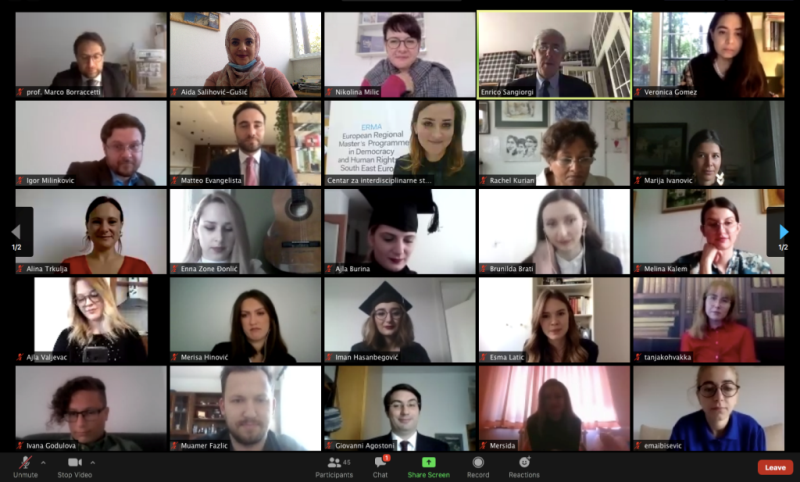 The Graduation Ceremony for 25 graduates of the European Regional Master’s Programme in Democracy and Human Rights (GCSEE/ERMA) is held online on Thursday, October 29, 2020. University professors, graduates of the ERMA program and their friends, family members were among the guests at the Ceremony.