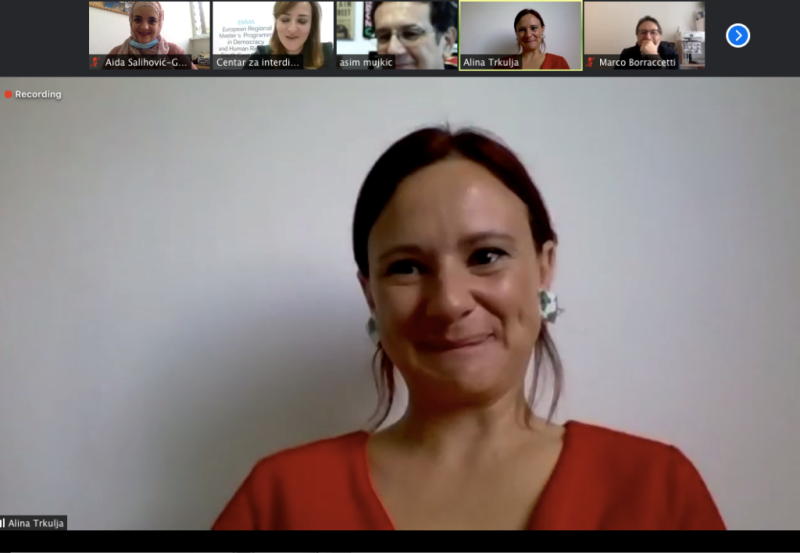 The program co-directors Prof. Dr. Marco Borraccetti and Prof. Dr. Asim Mujkić presented the report for 2019/2020 and announced the names of the students who were awarded this year for their academic success and the best final papers. Giovanni Agostoni won the Honorary award “Professor Zdravko Grebo”, while the Global Campus best thesis award was given to Melina Kalem. ERMA Best theses Awards went to Tanja Kohvakka, Angela Campos Fernandez, Giovanni Agostoni and Esma Latić, and the Global Campus Internship Award went to Esma Latić for her excellent academic success.