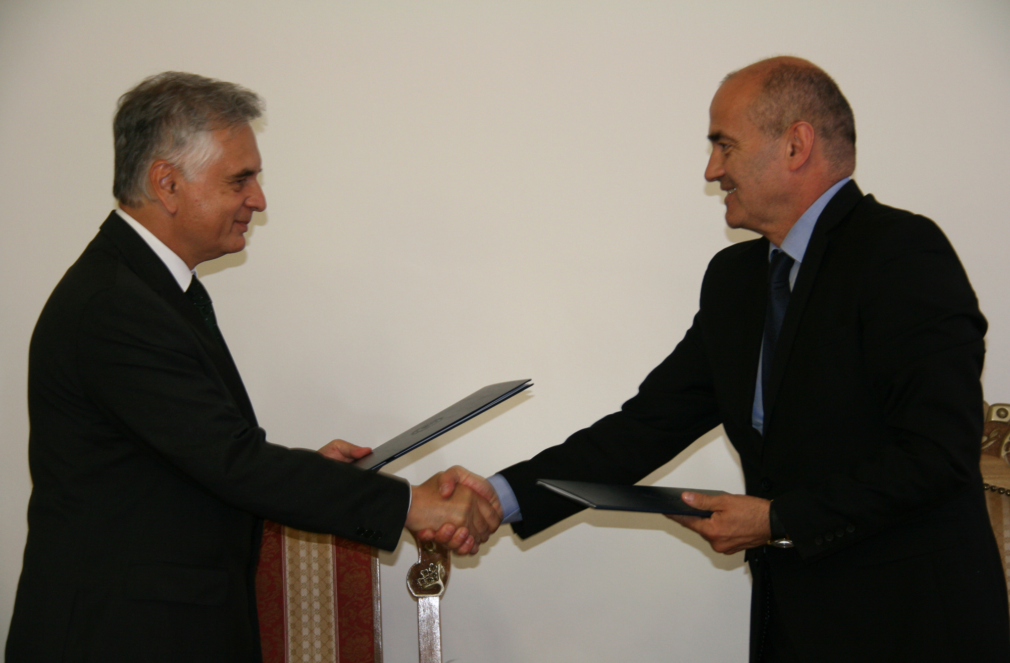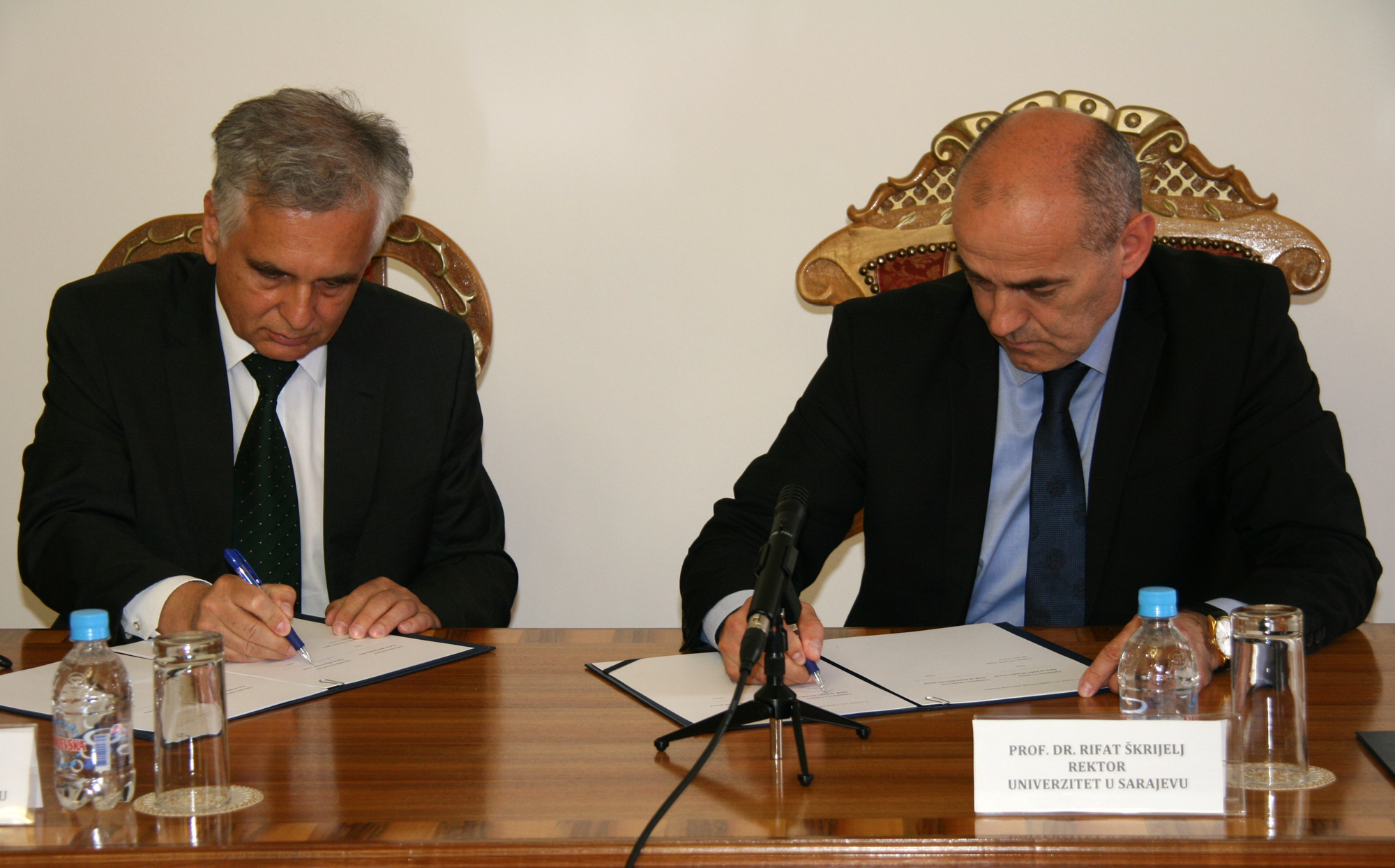 An agreement concluded for an indefinite period was signed by Prof. Dr. Rifat Škrijelj, University of Sarajevo Rector and Prof. Dr. Dušan Nikolić, University of Novi Sad Rector. The Agreement envisages the implementation of cooperation through networking and the mutual exchange of teachers, researchers, students and other staff for the purpose of lecturing, visiting and sharing experiences; joint participation and registration for funds intended for educational, research and artistic activities; joint activities in the field of education, training and research, organization of conferences, symposia, congresses, seminars, courses, summer schools, workshops; exchange of professional literature, textbooks and other university publications, etc.