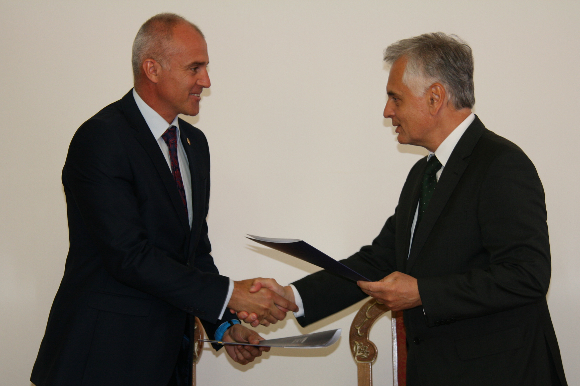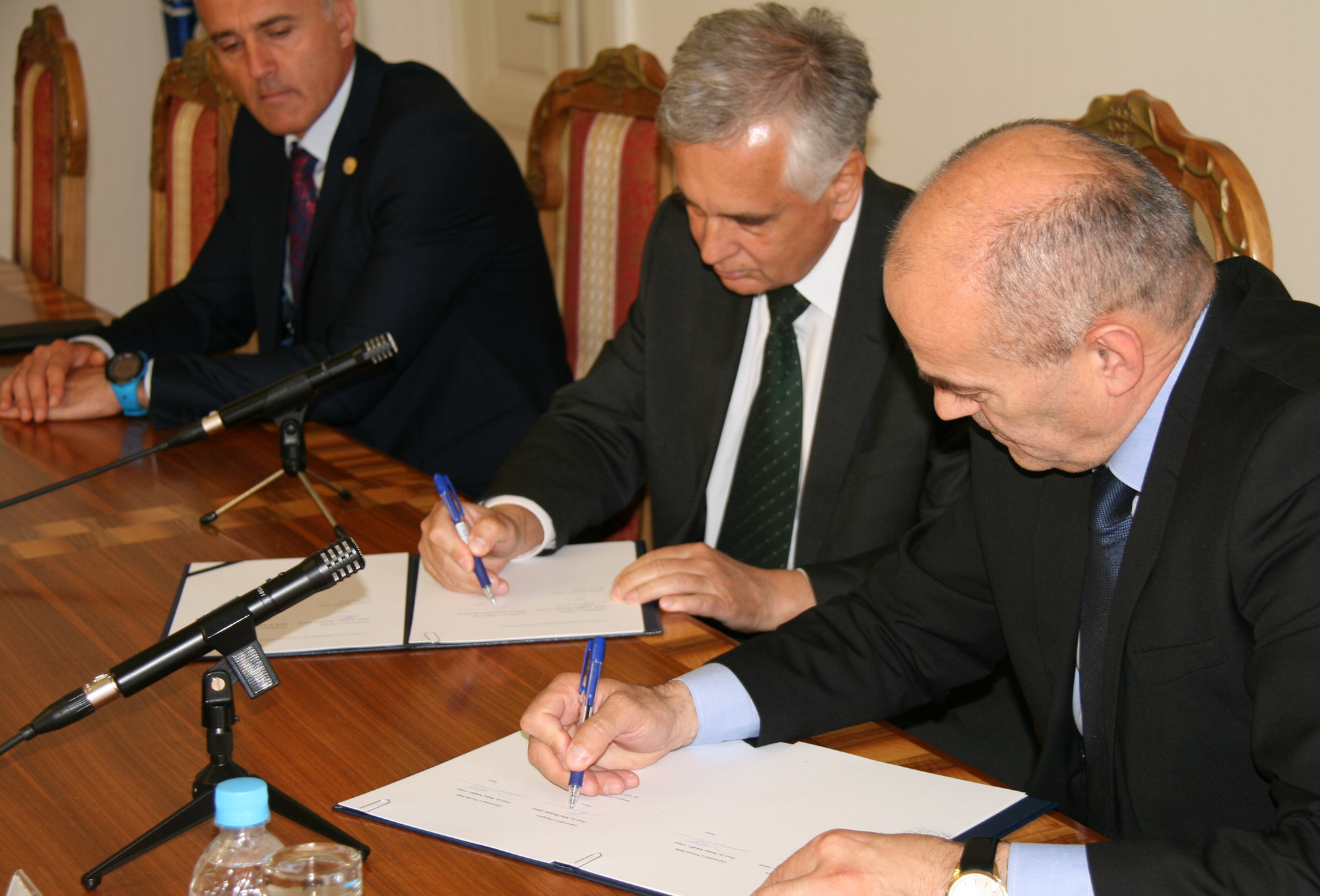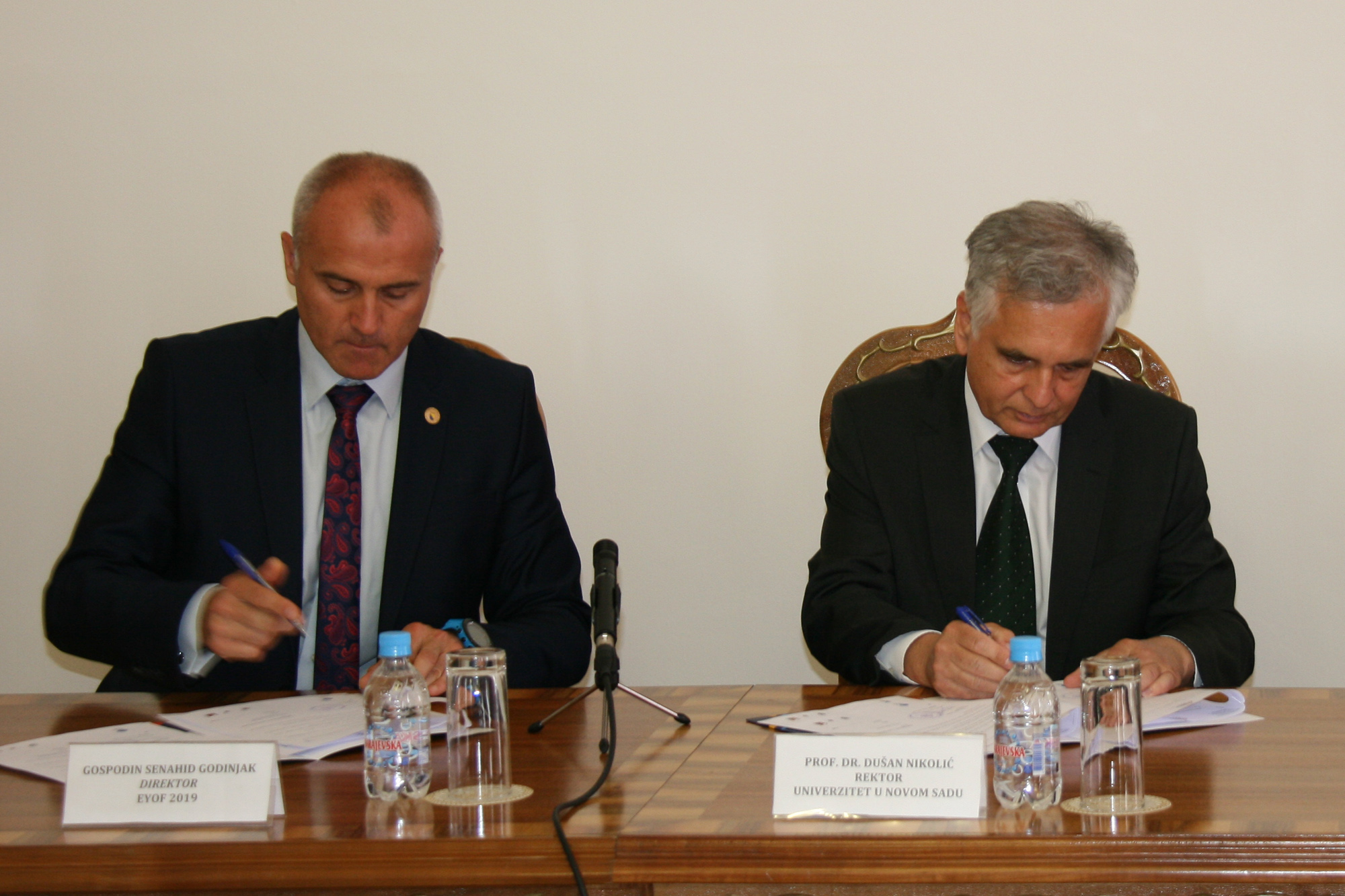 In the second part of the ceremony, the Agreement on business cooperation and partnership between the European Youth Olympic Festival 2019 - EYOF 2019 and the University of Novi Sad was signed. In a Memorandum, signed by Prof. Nikolić, University of Novi Sad Rector and Mr. Senahid Godinjak, EYOF 2019 Director, the readiness for various types of continuous reciprocal business cooperation and partnership in order to successfully prepare for the organization and maintenance of the European Youth Olympic Festival in 2019 was expressed, including the cooperation to take place through various types of business, organizational, professional, educational, scientific and operational cooperation and partnership.