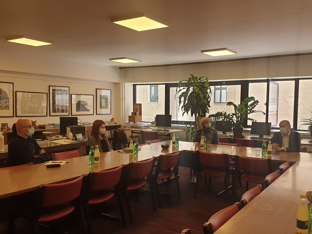 The realization of the teaching process and the achieved results, artistic work, and reform processes and integration of the University were the topics of the meeting of University of Sarajevo Rector, Prof. Dr. Rifat Škrijelj and Academy of Fine Arts Dean, Prof. Dr. Dubravka Lejlić-Pozderac. The meeting, held on 4 June 2020, at the Academy of Fine Arts and it was attended by University Vice-Rectors: Prof. Dr. Dženana Husremović and Prof. Sanja Burić, Academy Vice Deans Prof. Mr. Sc. Mirsad Begović and Prof. Mr. Sc. Srđa Hrisafović, as well as Mr. Sc. Miroslav Živanović, Head of the Rector's Office, Ms. Elma Đozo, Secretary of the Academy and Ms. Nadja Softić from the Student Affairs Service of the Academy.