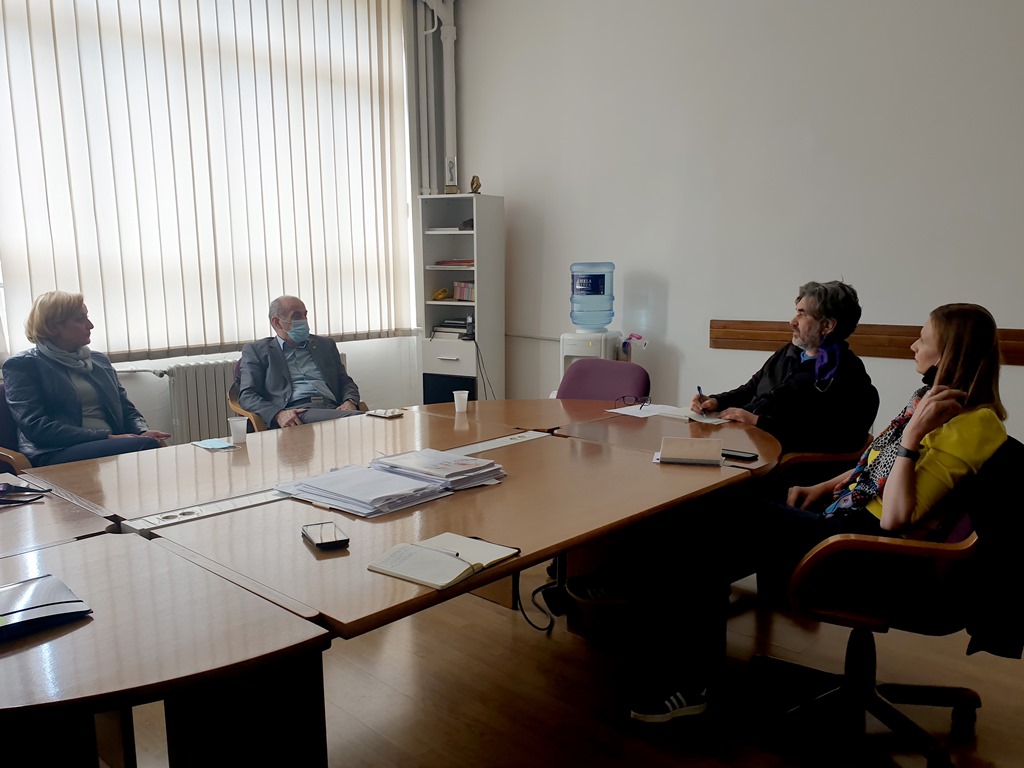 On Wednesday, 3 June 2020, at the premises of the UNSA Academy of Performing Arts, a meeting between the Academy Dean, Prof. Srđan Vuletić and University Rector, Prof. Dr. Rifat Škrijelj took place. The meeting was also attended by the University Vice-Rectors: Prof. Dr. Dženana Husremović and Prof. Sanja Burić, Academy Vice-Deans: Prof. Dr. Elma Tataragić and Prof. Dr. Mersad Čuljević.
