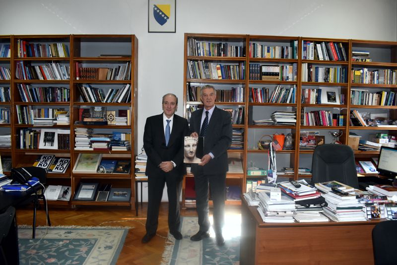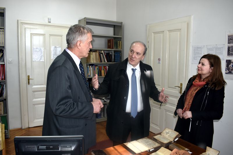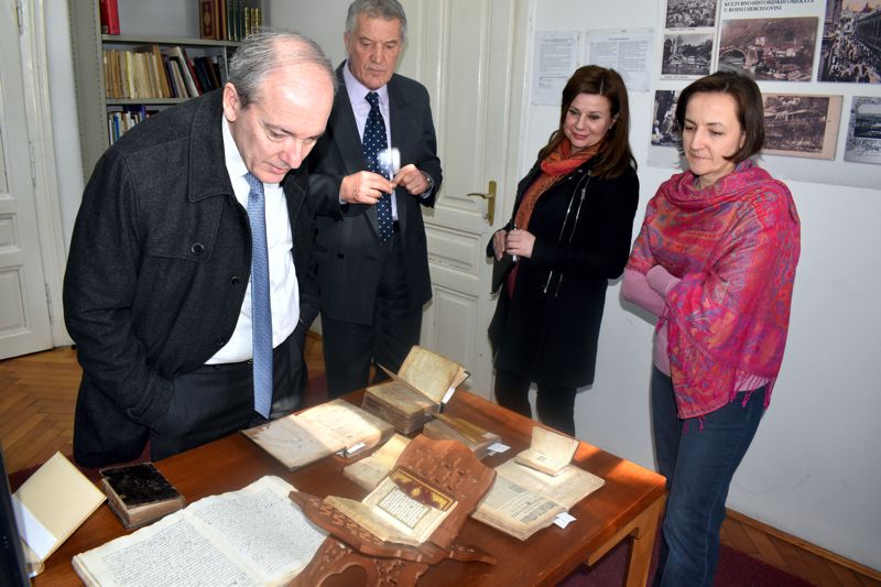 On this occasion, Dr. Ovčina presented to Ambassador Papandreou the Department of Special Collections of NUBBiH, which preserves the invaluable cultural and historical heritage of our country, as well as the cultural and historical heritage of the world. He was particularly attracted to the Greek-language manuscript and to a Hebrew-language publication in Thessaloniki, 1564. This publication is very rare and researchers believe that there are only 5-6 copies stored in the world.