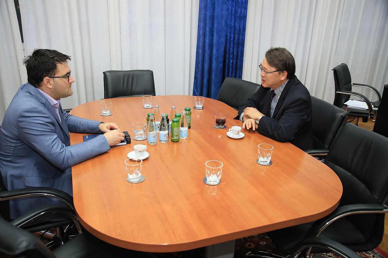 Ambassador of Japan to Bosnia and Herzegovina H.E. Hideyuki Sakamoto visited the Faculty of Philosophy, University of Sarajevo. In an interview with Doz. Dr. Amir Duranović, Vice-Dean for Scientific Research, International Academic Work and Publishing Society, Faculty of Philosophy, the realization of the Government of Japan's support for the Faculty of Philosophy to initiate and implement a program of study of Japanese language and culture was discussed.