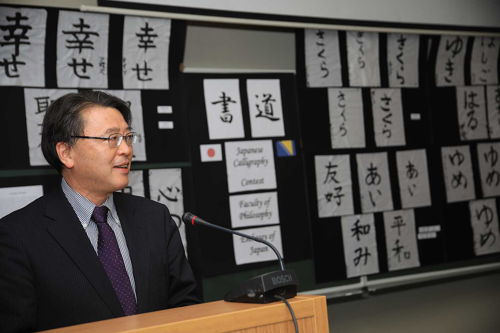 The visit was organized on the occasion of the completion of the Japanese Calligraphy Days program, realized at the Faculty of Philosophy from 25 to 31 January 2020. Ambassador Sakamoto presented the participants with certificates and a suitable gift. At the event were also present Japanese language and culture programs teachers and coordinators, and students attending Japanese language courses taught at the UNSA Faculty of Philosophy.