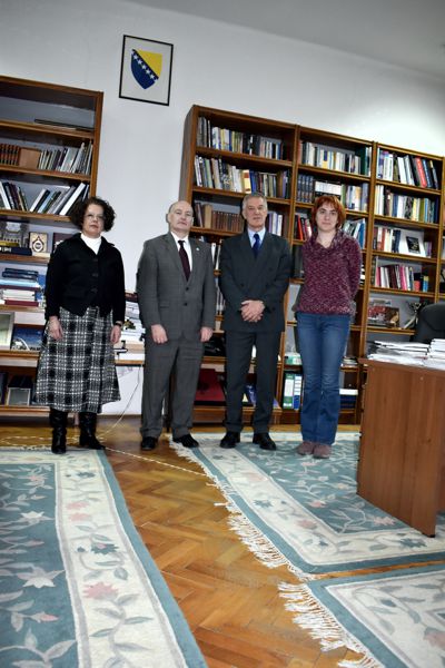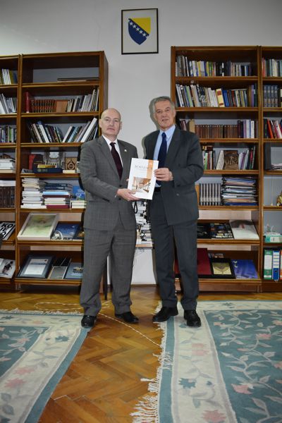 H.E. Myles Geiran, Ambassador of the Republic of Ireland visited the National and University Library of Bosnia and Herzegovina on 20 January 2020, where he met with the Director, Dr. Ismet Ovčina and his associates. Dr. Ovčina welcomed the distinguished guest and presented him activities carried out so far regarding the nomination of Bosnian writers for the prestigious International DUBLIN Literary Award. From 2019, the National and University Libraries of Bosnia and Herzegovina, on the proposal of H.E. Geiran has become the nominating body for the Dublin Literary Award, and this year again will be proposing a new author and novel for this prestigious award. Director Ovčina additionally informed H.E. Ambassador Geiran on the state of the NUBBiH Fund, in particular Irish authors, literature, history, and material on the Republic of Ireland. In addition to activities for the literary prize and the NUBBiH Fund, Ambassador Geiran and Dr. Ovčina discussed new projects in the field of research and promotion of common cultural and historical values.