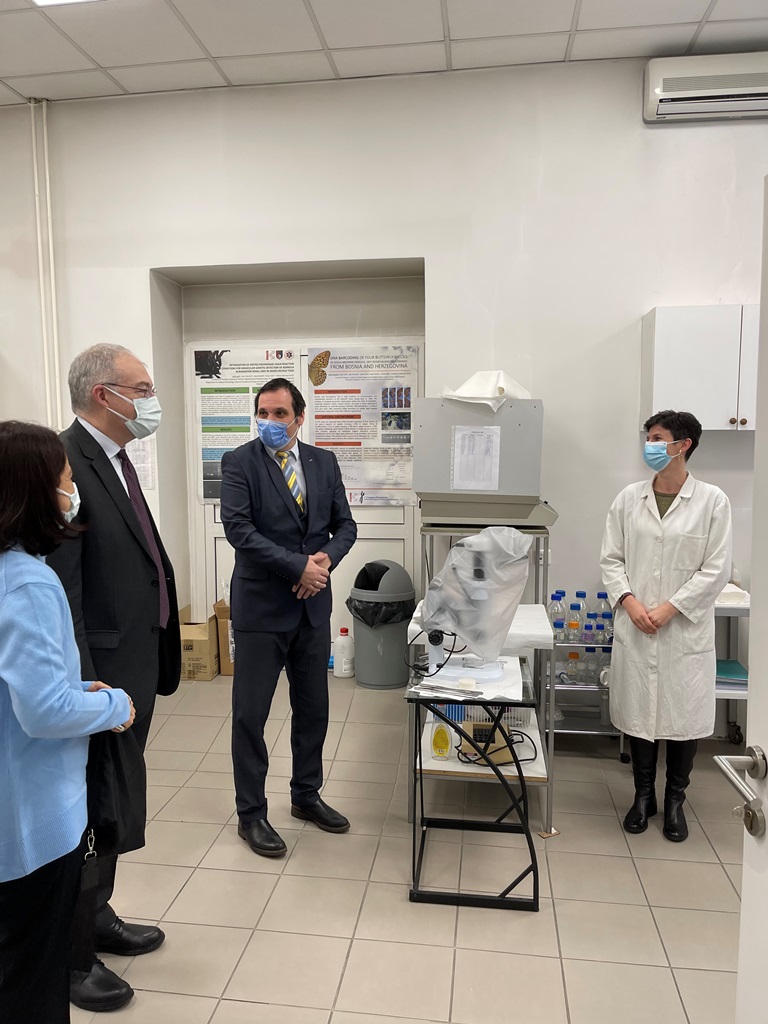 University of Sarajevo - Institute for Genetic Engineering and Biotechnology was visited by His Excellency the Ambassador of the Republic of Turkey to Bosnia and Herzegovina Mr. Sadık Babür Girgin together with his wife and the team from the Embassy. The topic of discussion was the development of biotechnology and the improvement of existing cooperation with world-famous and developed scientific research institutes in the field of genetic engineering and biotechnology, which operate within the Republic of Turkey. Also, modalities of assistance to the Institute for Genetic Engineering and Biotechnology in the development of a biotechnology platform as a basis for various applications in diversity protection, biomedicine, health and agri-food technology were discussed. On this occasion, a step forward was made in improving the cooperation between the University of Sarajevo and the Turkish academic and scientific community.