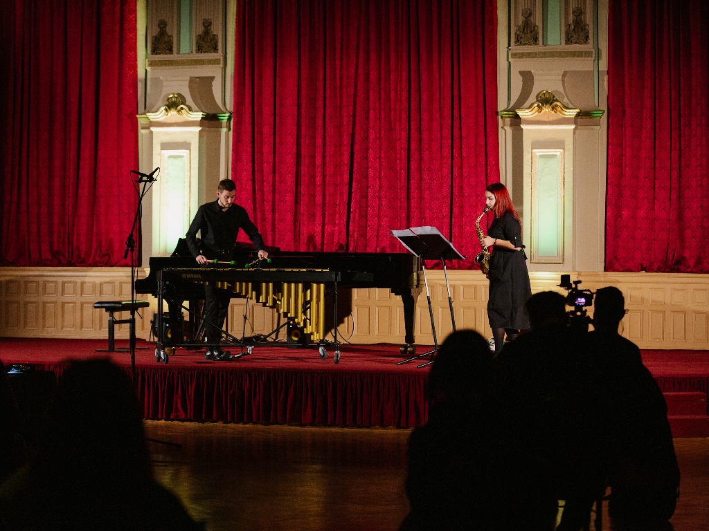 The concert opened with the composition We Bop by the Australian composer Gerard Brophy, written in 1995 for alto saxophone and vibraphone, performed by Ivona Šiško and Marino Repanić. The melody of Pyotr Ilyich Tchaikovsky on the violin was interpreted by second-year student Alex Mateescu. Pianist Nadir Hošić introduced himself to the Pour le piano suite of the French Impressionist Claude Debussy, and after him Ariana Piknjač performed virtuoso variations of Airs Valaques by Albert Franz Doppler. In the double role of a student in the departments of piano and composition, Mirza Gološ presented the premiere of his composition SYNC to BUG written for piano and tape. The stubborn trio consisting of Azmir Halilović, Danijel Lovrić and Asmir Hamzić played the accordions and at the end they danced the song by the Spanish composer Gorka Hermos Ka mate. The item of the concert was the rarely performed cycle by Hugo Wolf Michelangelo-Lieder performed by bass Ivan Šarić.