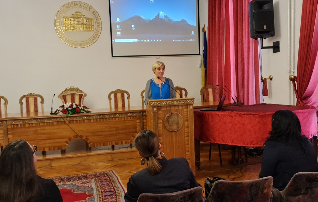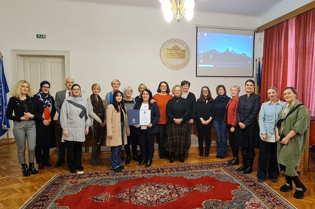 The award was presented by Prof. Dr. Dženana Husremović, vice-rector for teaching and student affairs of the University of Sarajevo, and on behalf of the Committee for the Library and Information System addressed Prof. Dr. Lejla Hajdarpašić, president of the Board and Prof. Dr. Senada Dizdar, president of the Commission for rewarding librarians.