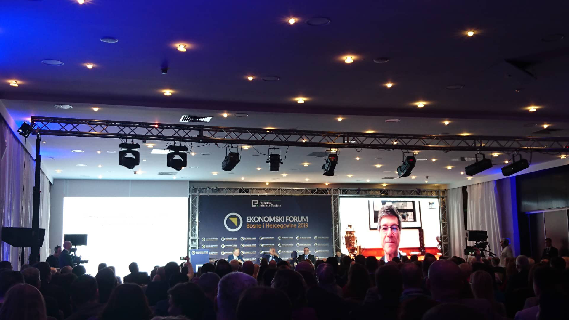 The first session, traditionally, was dedicated to the topic “Competitiveness of Bosnia and Herzegovina and countries in the region“, and the moderator was Prof. Dr. Zlatko Lagumdžija. As part of this panel, through the video link, Prof. Dr. Jeffrey Sachs, one of the most prominent economists in the world addressed the audience.