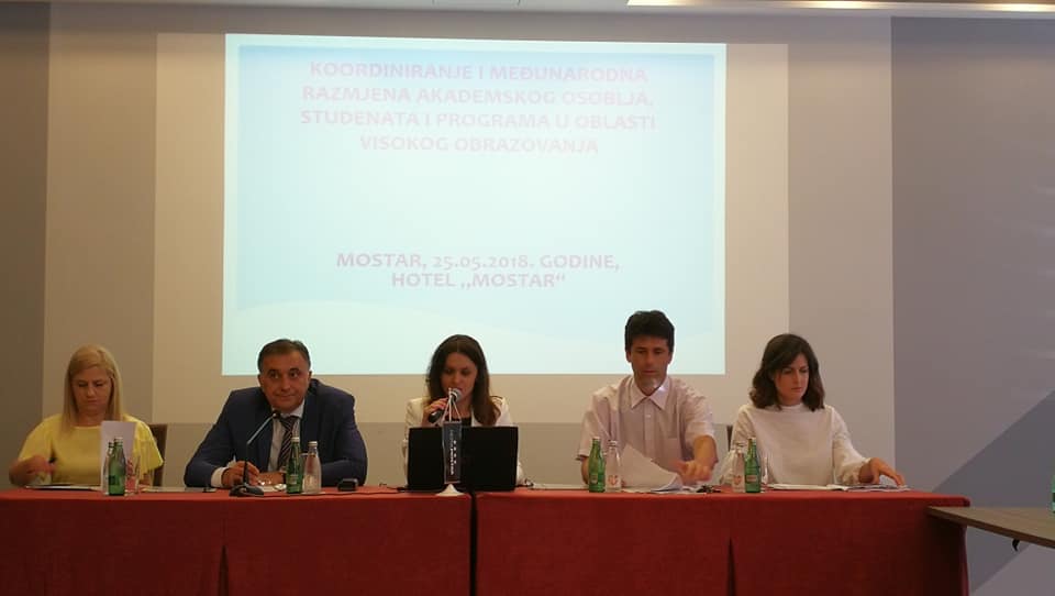 On 25 May 2018, the Center for Information and Recognition of Higher Education Documents, based in Mostar, organized a Round Table/Seminar on “Coordination and International Exchange of Academic Staff, Students and Programs in Higher Education.” The seminar was attended by representatives of public and private universities in Bosnia and Herzegovina, as well as agencies and institutes from the field of BH higher education representatives. At the meeting they discussed the importance of academic and administrative mobility, the mobility programs present in Bosnia and Herzegovina, the ways of promoting student, academic and administrative staff mobility, and the HEIs internal regulations related to the mentioned mobility. An example of good practice was presented by Mr. Božidar Grgić from the CMEPIUS institution in Slovenia, followed by BH university services/ international cooperation offices who presented their experience in these areas, while students presented their experiences during their stay at foreign partner universities. The Round Table conclusion is the drafting of a joint act that will be addressed to the executive in the field of higher education, in which it will recommend greater involvement in promoting and granting international mobility and creating conditions for a better and more transparent implementation of the Bologna process.