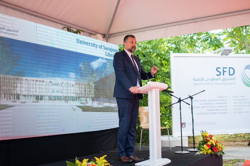 This ceremony represents a historic moment for the University of Sarajevo and Bosnia and Herzegovina as a whole. The project of constructing and equipping the University of Sarajevo Library, made possible by a generous grant from the Saudi Fund for the Development of the Kingdom of Saudi Arabia, stands as the largest post-war investment in university infrastructure. Its implementation will establish the University of Sarajevo as the rightful owner of the building, which, in addition to its undeniable social and cultural significance, will be cherished as a symbolic testament to the friendly relations between Bosnia and Herzegovina and the Kingdom of Saudi Arabia.