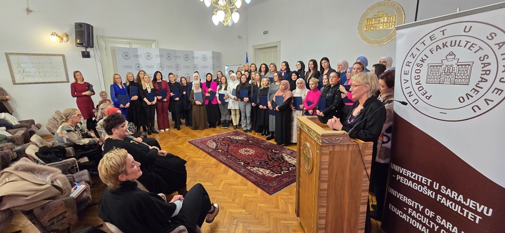 At the University of Sarajevo on 24 December 2024 a ceremony was held at the Rectorate to award certificates to participants of the non-cyclic program “Retraining for Work in Preschool Education.” The program was carried out by the Faculty of Pedagogy in cooperation with the Ministry of Education of Sarajevo Canton and the Institute for Development of Pre-University Education of Sarajevo Canton over the past year. 64 pedagogues and teachers attended the program, gaining qualifications to work in preschool education after completing the one-year program. This significantly strengthens the personnel capacities for preschool education in Canton Sarajevo, as the participants are already employed in preschool institutions, and the program has strengthened their competencies for working in this sector. The University of Sarajevo - Faculty of Pedagogy has provided an excellent example of the realization of retraining programs, the implementation of which will be necessary in the coming period in order to ensure high-quality and professional staff in educational institutions, as there is an increasing shortage of teaching professions.