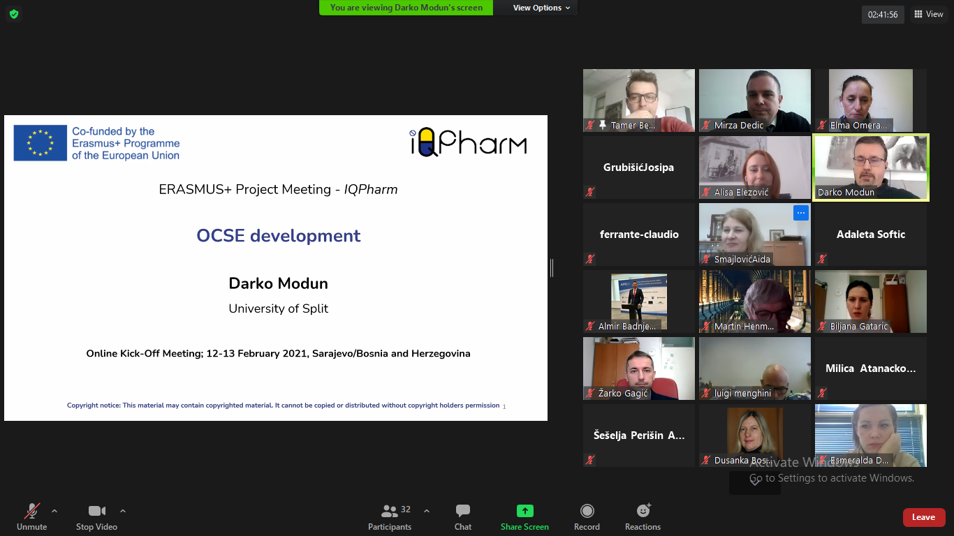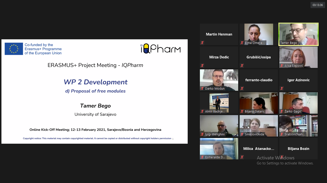 At the first online meetings held on 12 and 13 February 2021 (IQPharm Kick-Off Meeting), the project coordinator and participants officially started activities related to this extremely important project of national interest, which aims to improve the quality and modernize the study of pharmacy at public universities in Bosnia and Herzegovina.