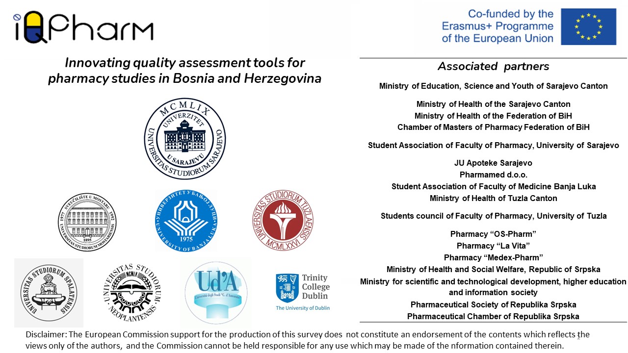 Erasmus+ CBHE project “Innovating quality assessment tools for pharmacy studies in Bosnia and Herzegovina” - IQPharm started