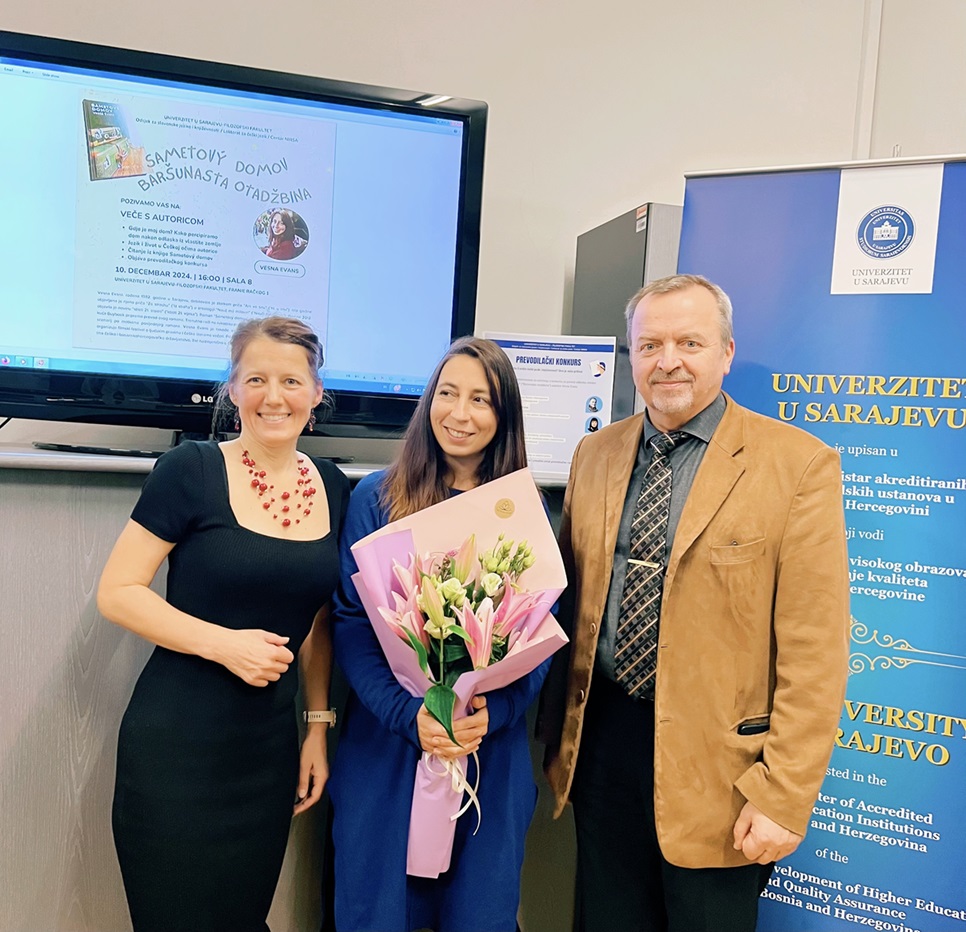 On Tuesday, 10 December 2024, we had the honor of hosting Vesna Evans, an author born in Sarajevo who divides her life between the Czech Republic and the Kingdom of Norway. The occasion for her guest appearance at the Czech Language Editing Department of the Department of Slavic Languages and Literatures of the University of Sarajevo – Faculty of Philosophy was the presentation of the novel Sametový domov (The Velvet Homeland).