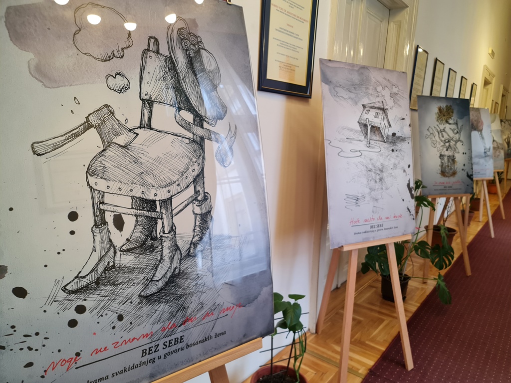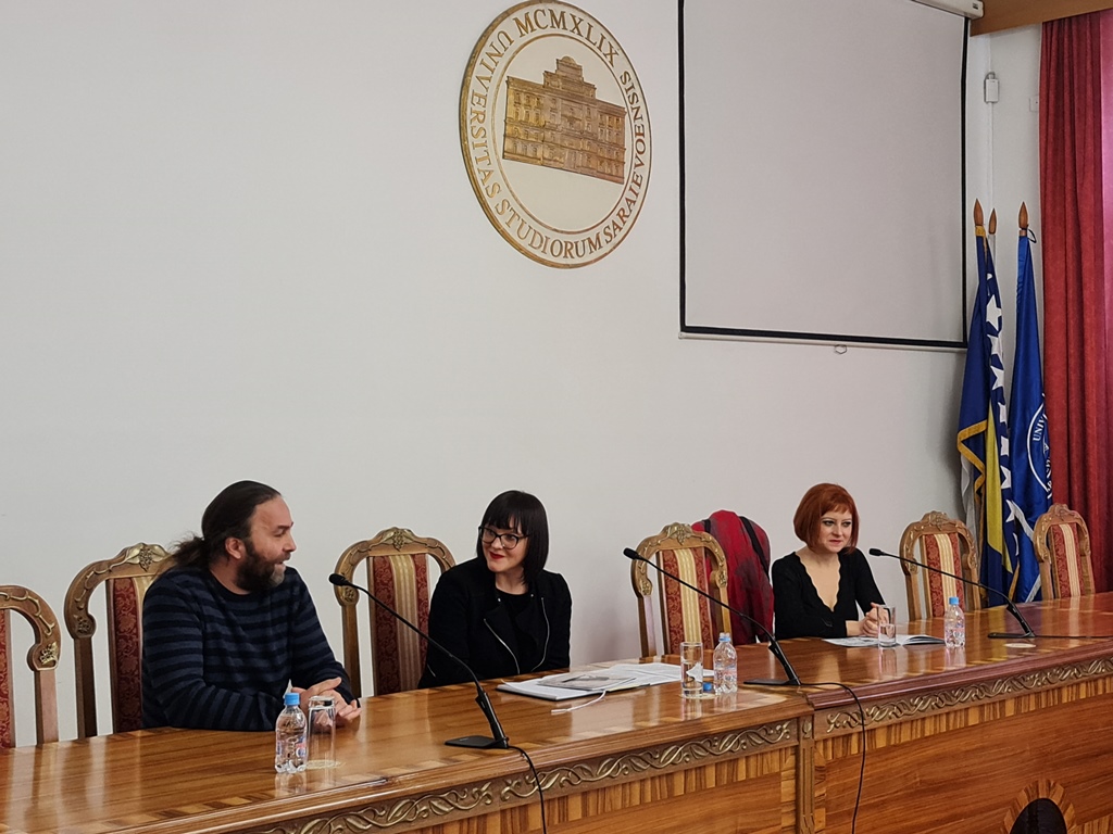 Instead of the traditional congratulations on the occasion of 8 March - International Women's Day, the University of Sarajevo marked this historic date by respecting and affirming the efforts of women to achieve social equality. By opening the exhibition and holding talks with author Šejla Šehabović and artist Dejan Slavuljica, the University of Sarajevo decided to open a new academic space for discussion on women's issues and rights, primarily appreciating the importance of free thought, sensitized optics and artistic engagement. The conversation with the artists was led by literary and cultural theorist Merima Omeragić, a researcher at the University of Sarajevo.