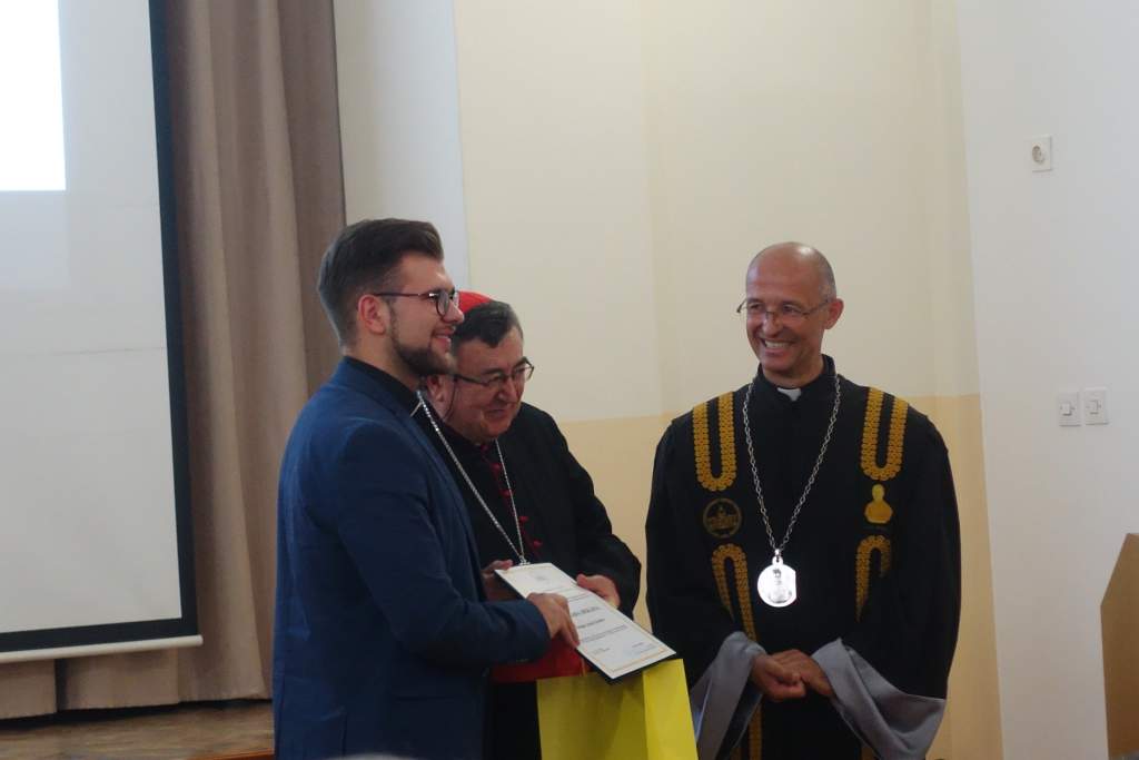 Cardinal Puljić handed awards to best students in 2017/2018 academic year: Matej Petrašić and Josip Dedić. Additionally, a retired Professor Franjo Topić received a Charter of gratitude upon retiring.