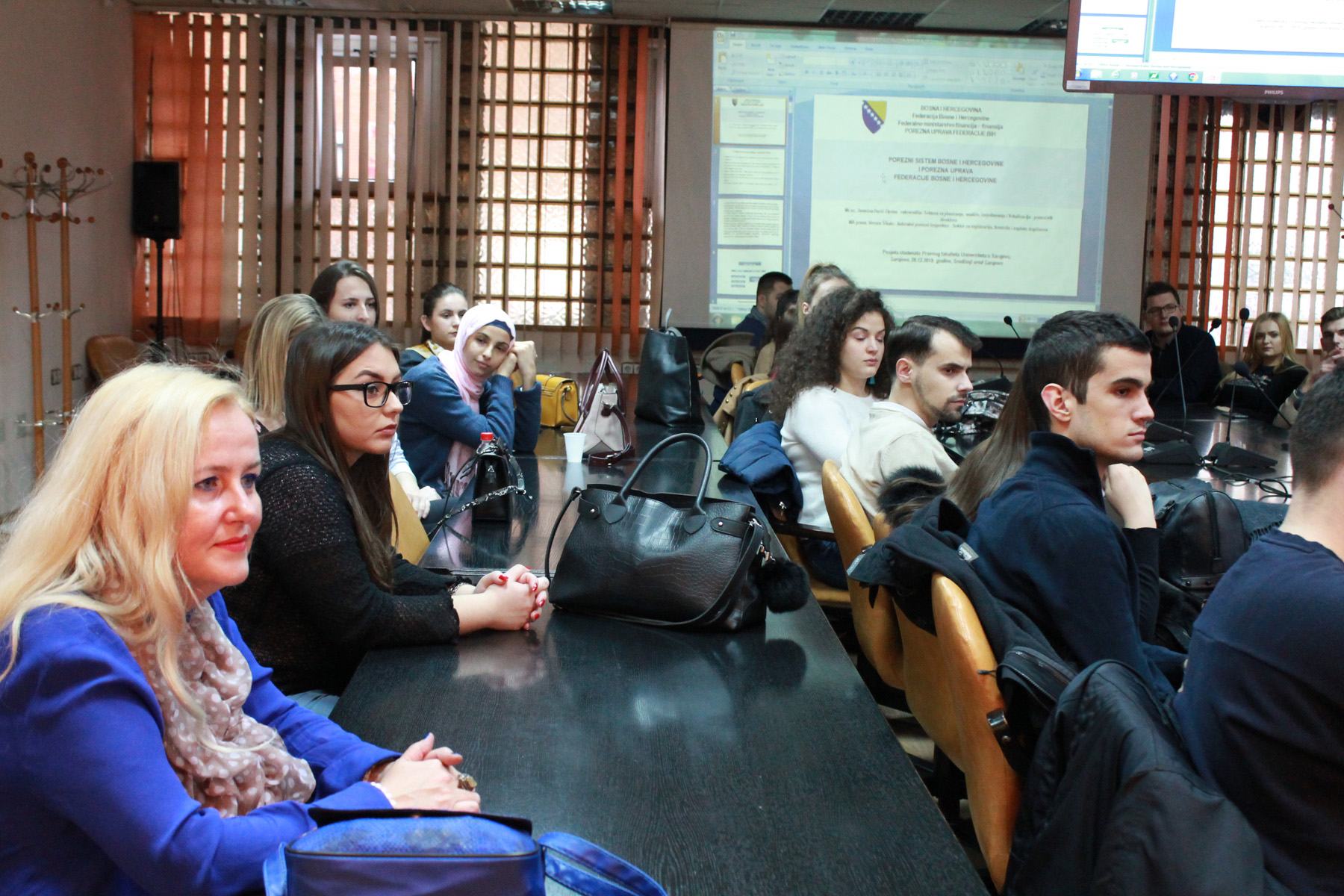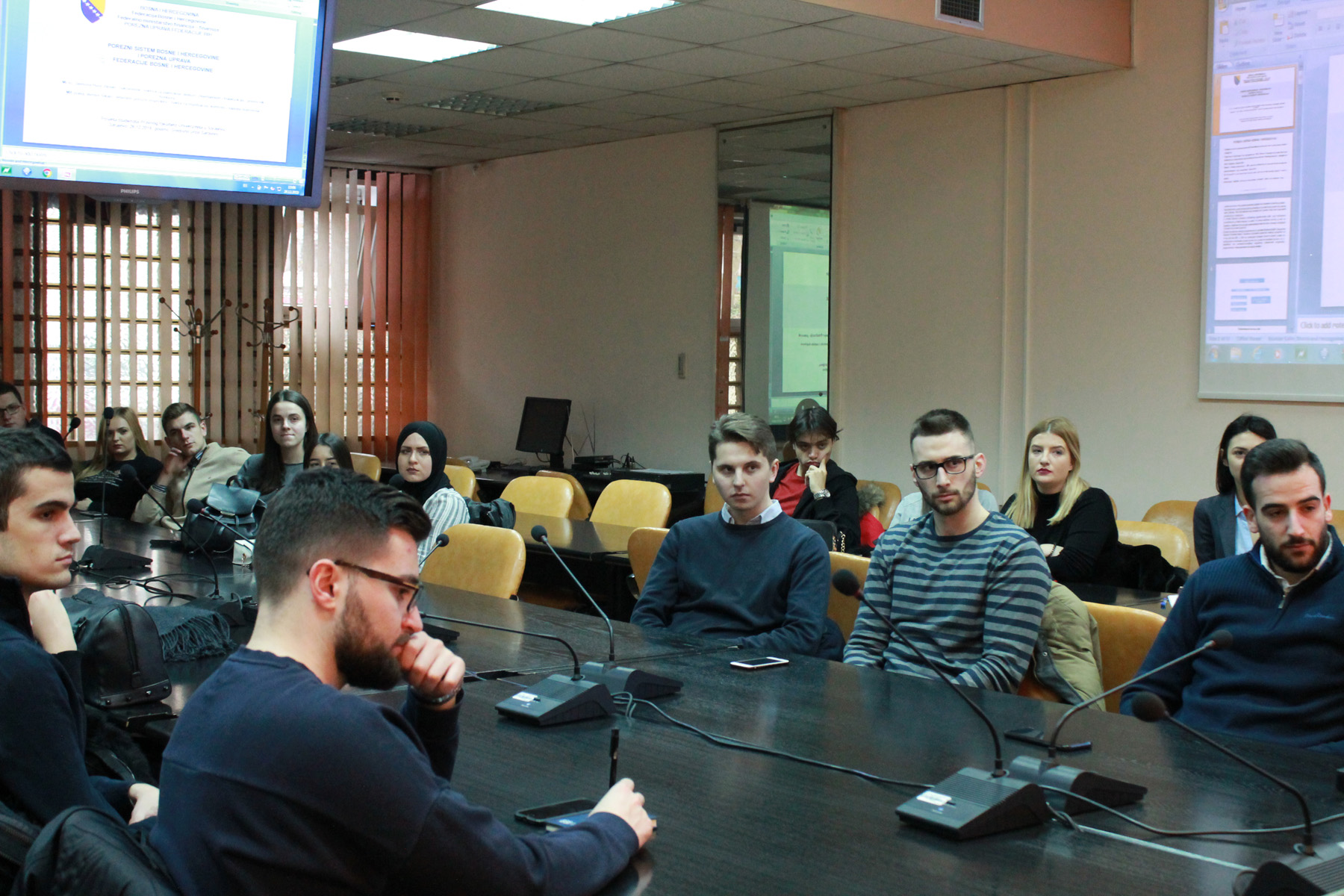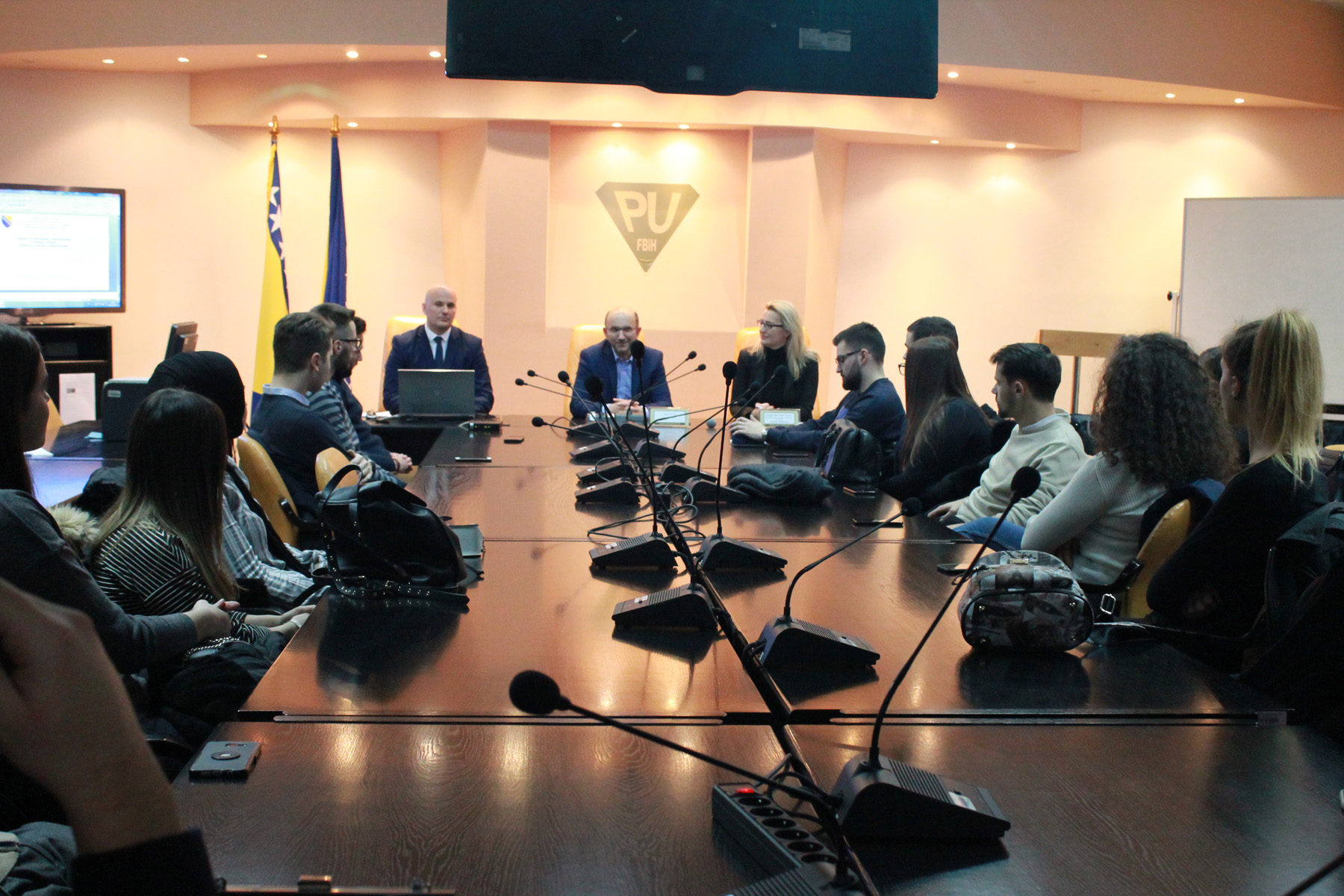 Students were addressed by the FBiH Tax Administration AD, Mr. Sc. Šerif Isović who informed them about the legal framework for establishing and the scope of competencies of the FBiH Police Directorate, as well as the significant importance of the Administration in the financial system and the role in collecting public revenues from direct taxes.