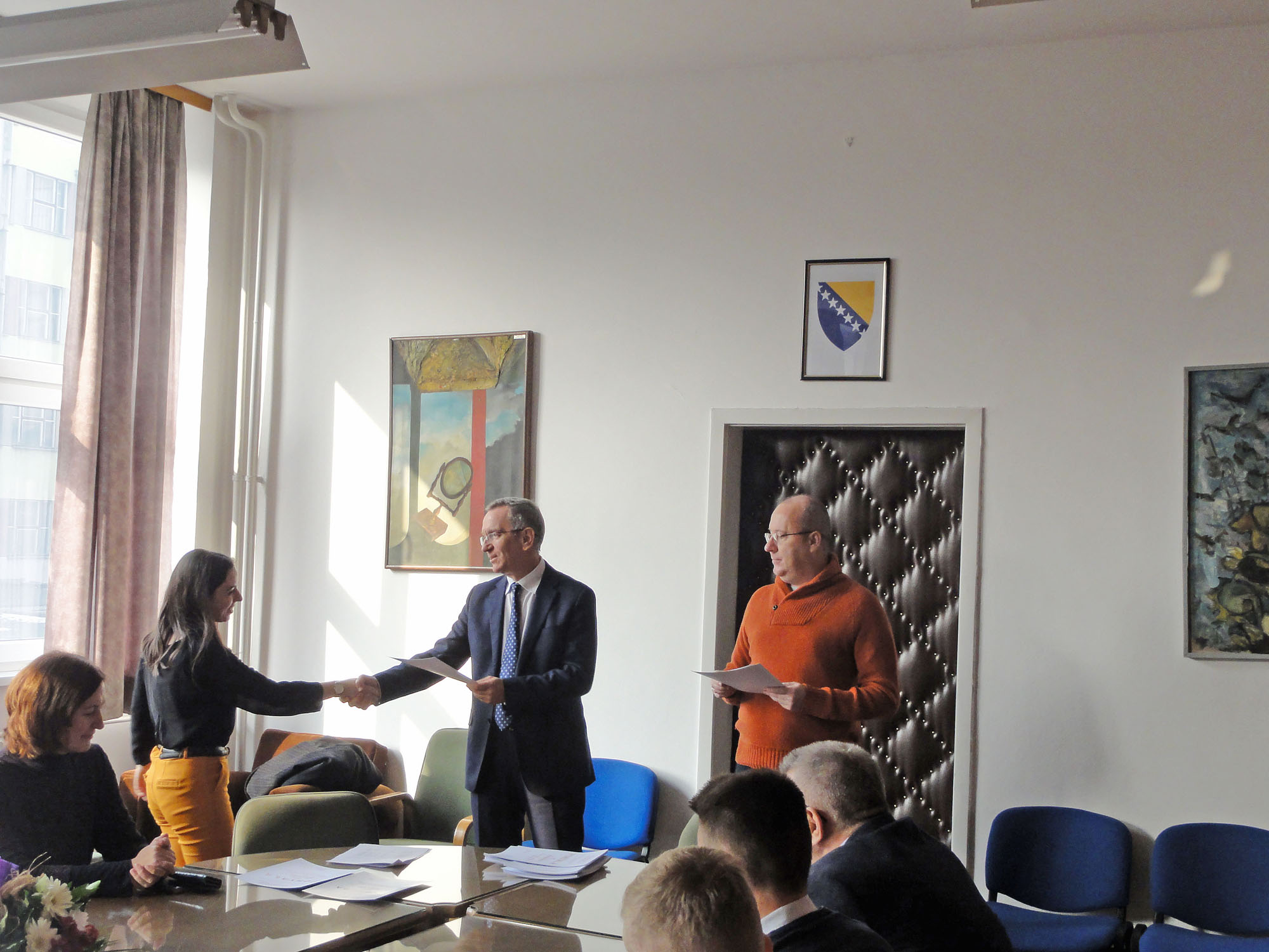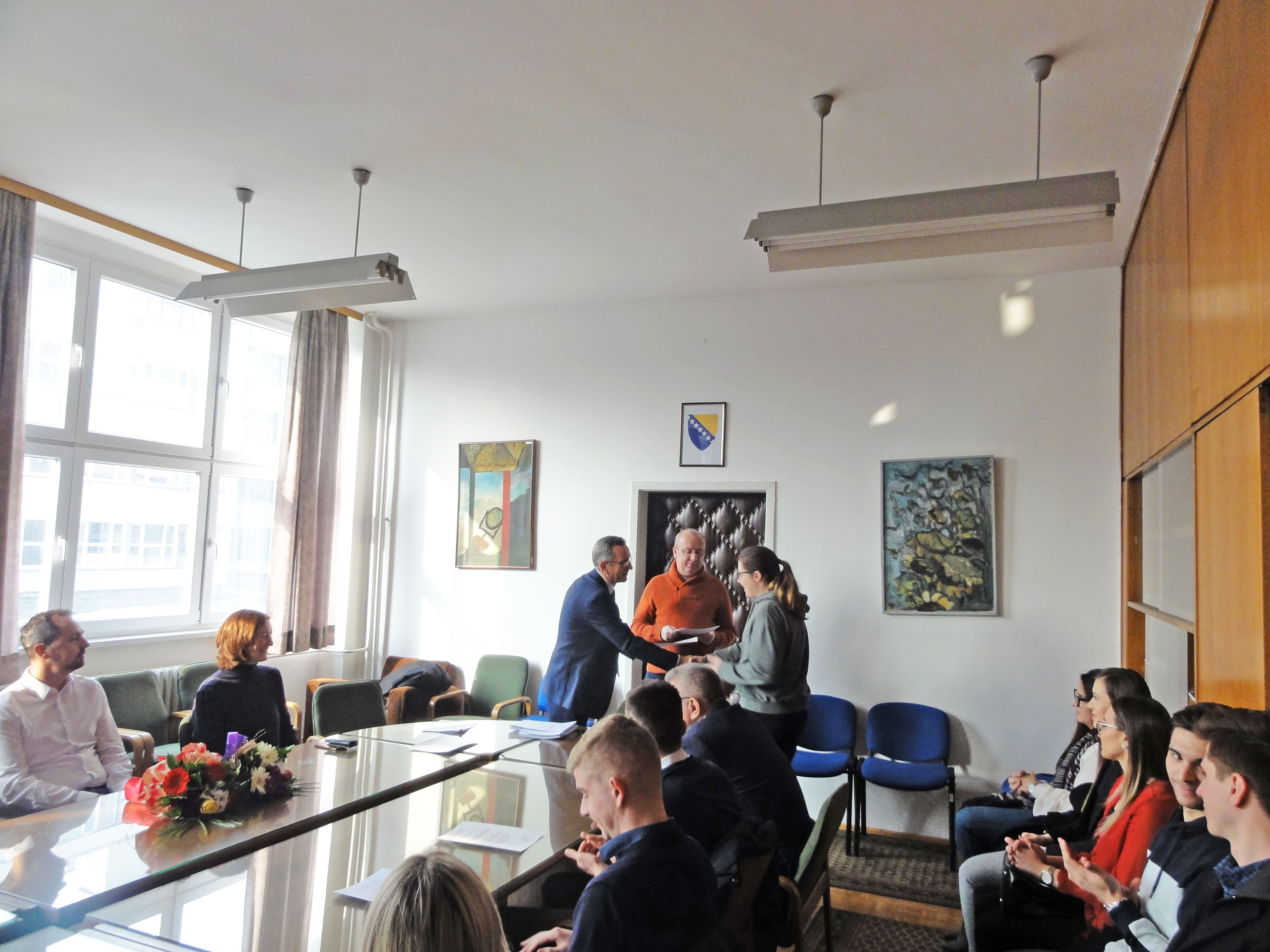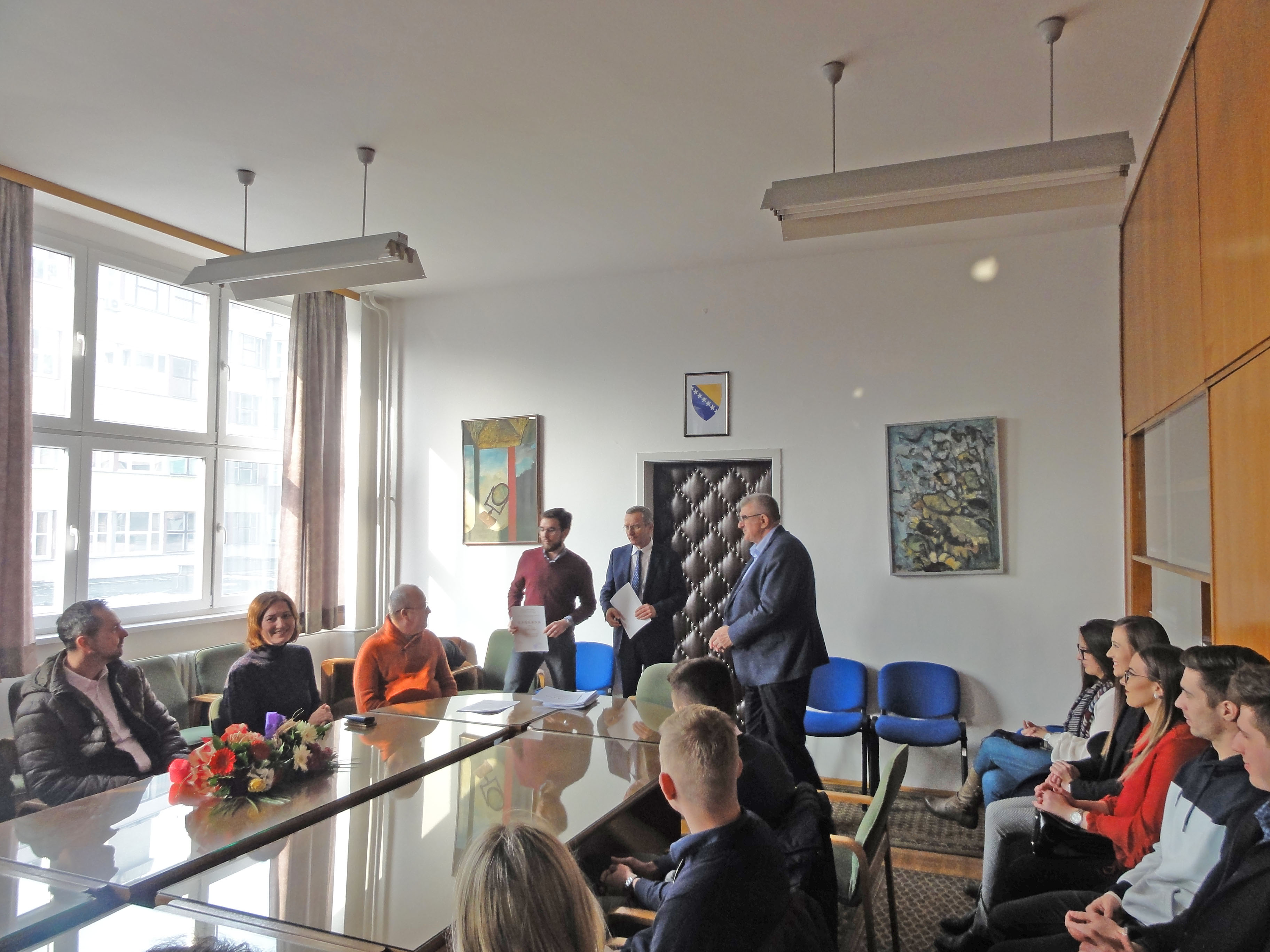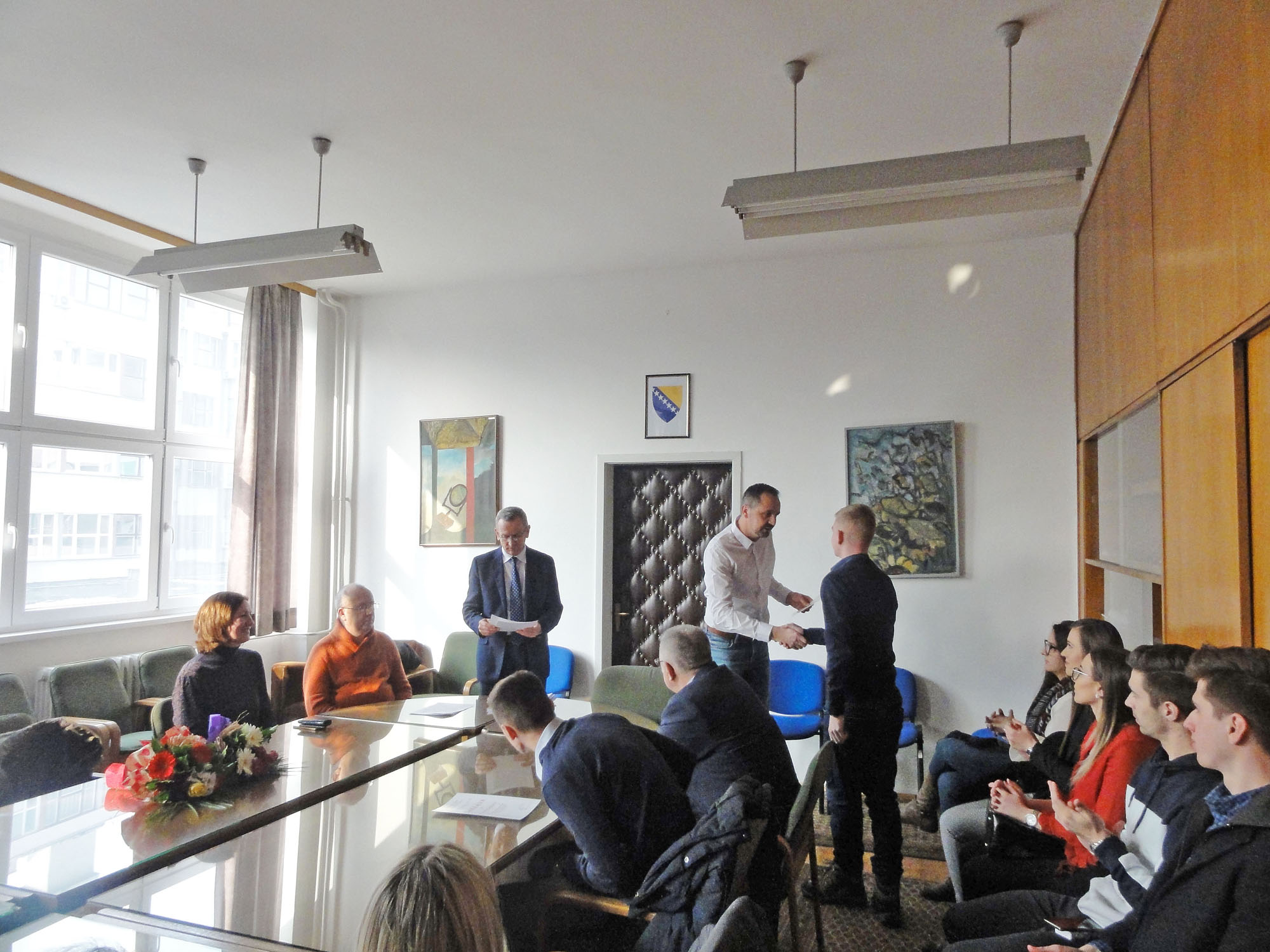 On the occasion of the 53rd Promotion of BA and MA graduates, on 16 January 2020, special diplomas and financial awards were given at the Faculty of Mechanical Engineering to the most successful students in academic year 2018/19. From the Academician Vlatko Doleček Fund, students Tarik Čorbo and Medin Zukanović were awarded cash prizes in the amount of 250 BAM each for the highest average grade in the first two years and study cycles from to the Mechanical Science field. Their average grade was 10.00 from the subject area. From the Ferid Galijašević Fund, 200 BAM were awarded to students: Kenan Baljić for achieving the best average grade of 9.83 during the first cycle of studies at the Department of Mechanical Production Engineering, Čolo Aida and Ferizbegović Šefika for achieving the best average grade of 9.44 during the II cycle of studies at the Department of Mechanical Production Engineering.