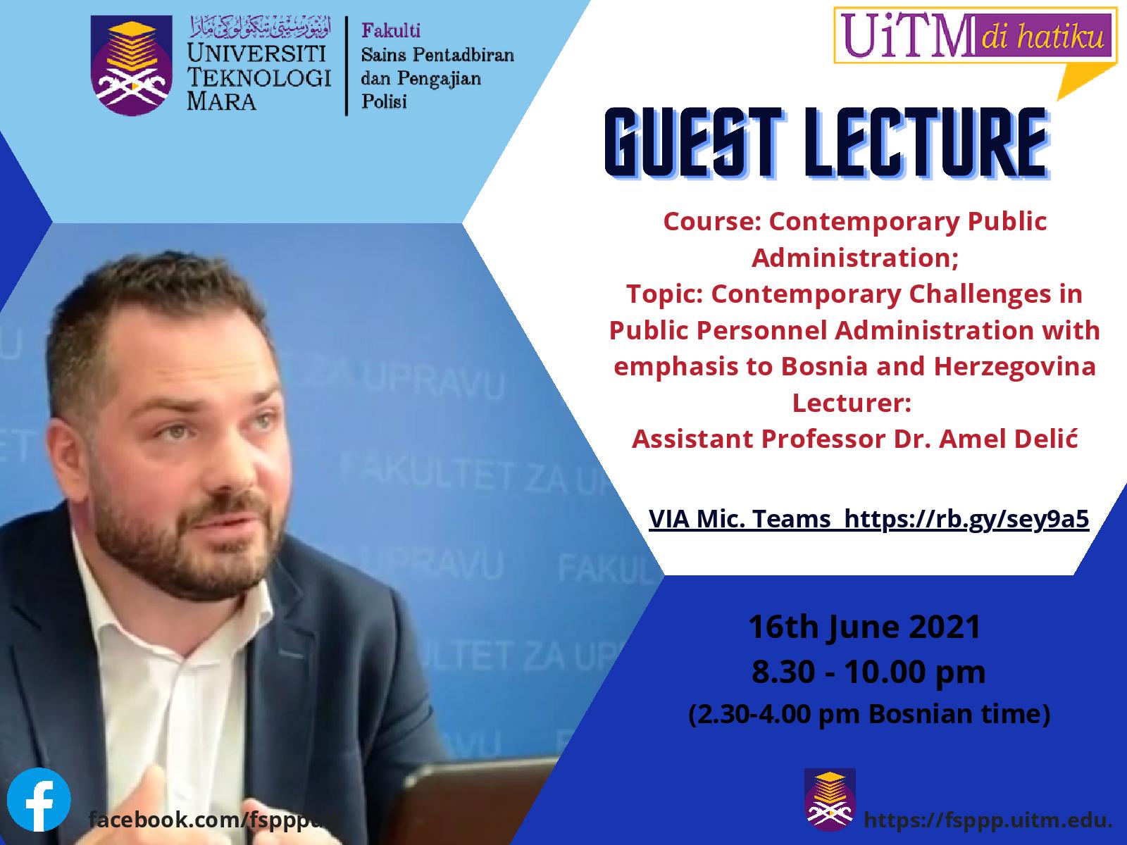 After lectures by Malaysian professors, Dr. Amel Delić gave a lecture on the subject "Modern Public Administration" for more than 600 present Malaysian students, on the topic "Modern challenges in human resources management in the civil service with a focus on Bosnia and Herzegovina." In his lecture, Dr. Delić presented the SIGMA principles of public administration as a globally accepted standard, then the constitutional structure of Bosnia and Herzegovina, after which he presented a detailed analysis of the application of SIGMA principles in the field of human resources management in the civil service at all levels of government in Bosnia and Herzegovina. successful models in the world.