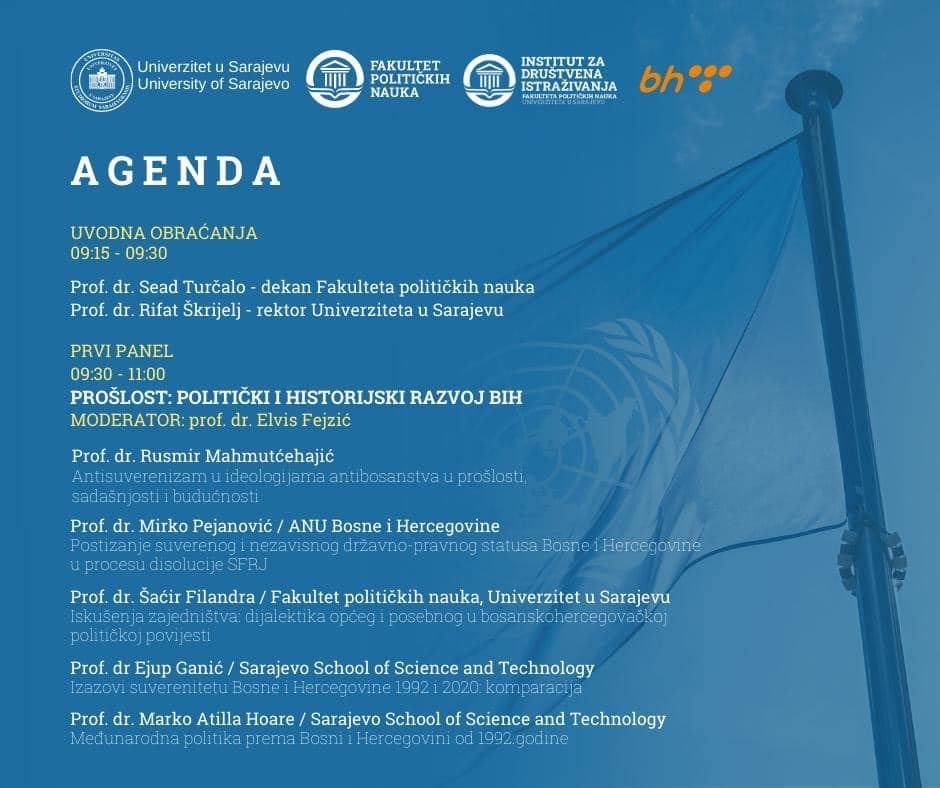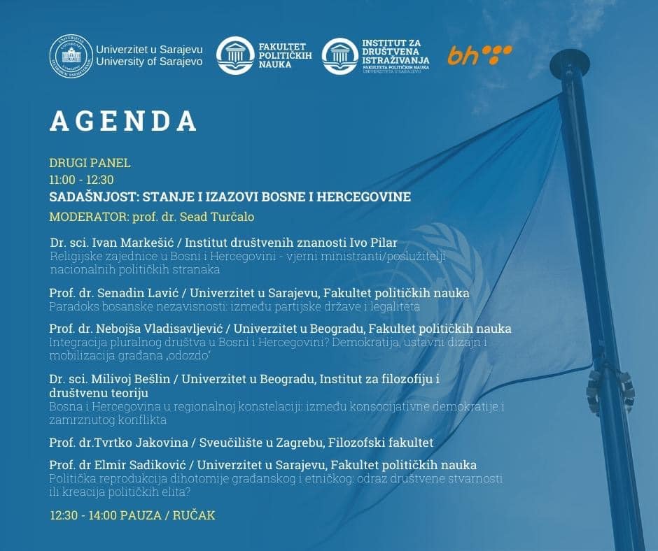 On the occasion of thirty years of state independence and admission of Bosnia and Herzegovina to the United Nations (22 May 1992), the International Scientific Conference Bosnia and Herzegovina: Political Situation and Development Perspectives was held at the Faculty of Political Science, University of Sarajevo on Friday, 20 May 2022. The conference was organized in order to conduct a scientific and professional discussion on these important events in the recent history of the state of Bosnia and Herzegovina with the participation of eminent domestic and foreign scientists, and a number of prominent political participants of the time.