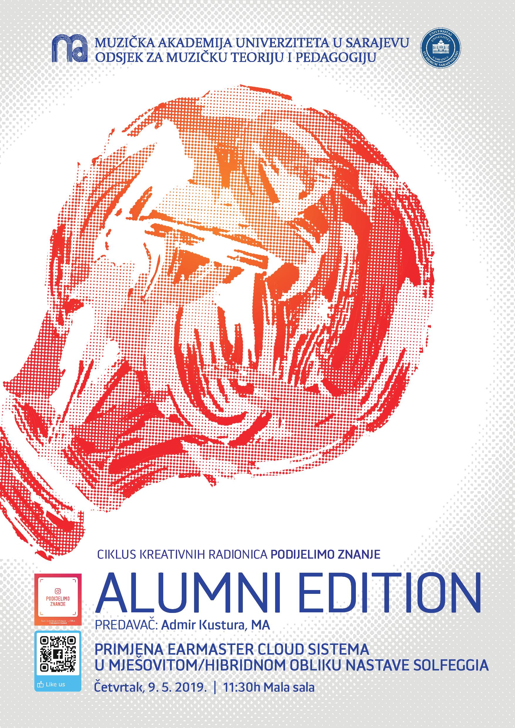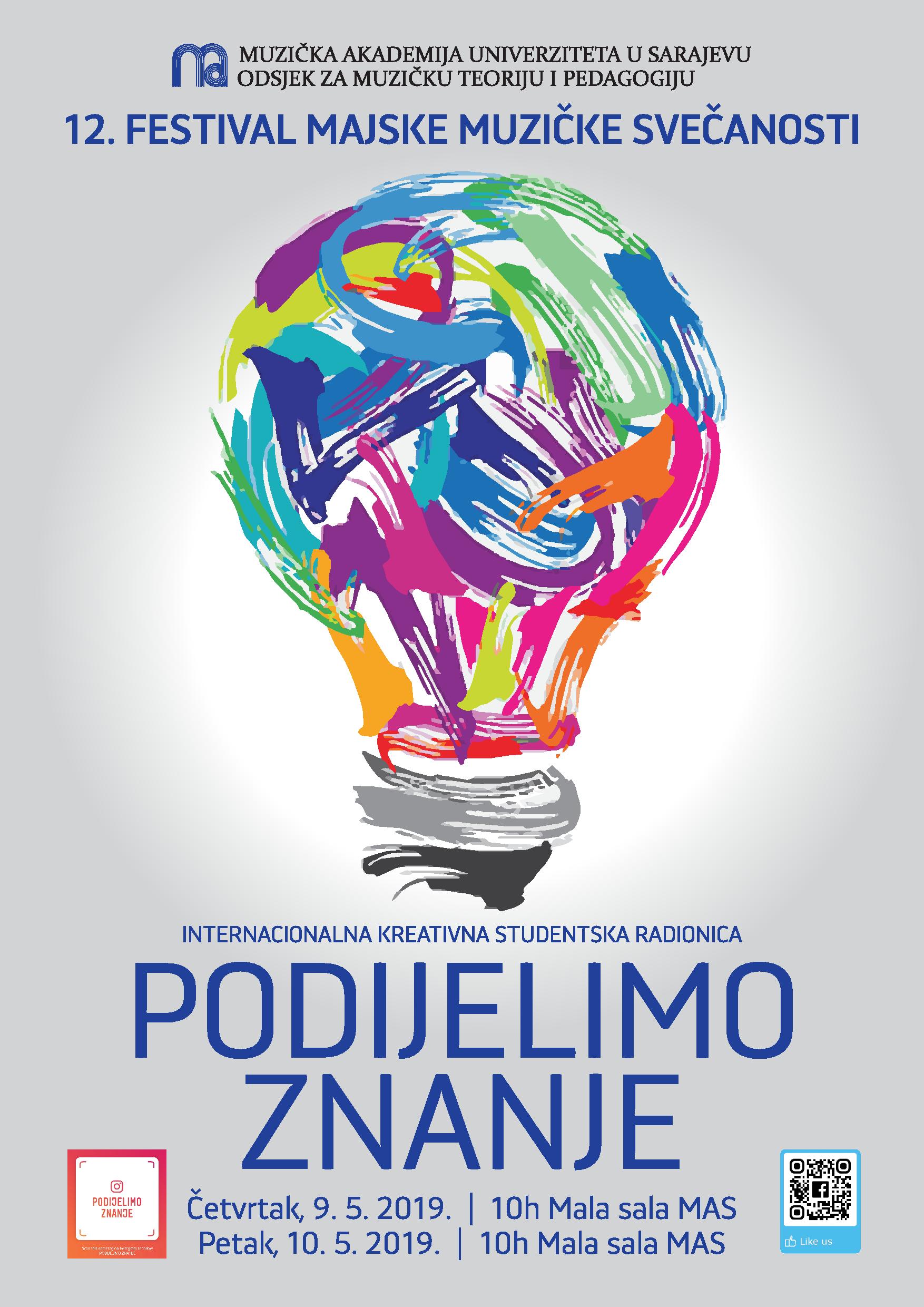 We are pleased to present you the International Creative Student Workshop Share the Knowledge 2019 and the Creative Workshop Share the Knowledge: Alumni Edition, organized by the Department of Music Theory and Pedagogy of the Music Academy, University of Sarajevo, will be held on 9 and 10 May during the May Music Festival. The Share the Knowledge project was created in 2017 on the initiative of teachers and associates of the Department of Music Theory and Pedagogy. It is conceived and realized as a cycle of creative workshops in several programmatically designed frameworks: along with the above two, we also remind of Share Knowledge - From another perspective, which was realized at the Music Academy in Sarajevo in the past year, bringing leading experts in the field of pedagogy, andragogy and sociology.